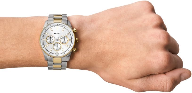 This 45mm Sullivan features a silver sunray dial, multifunction movement and two-tone stainless steel bracelet. Sku: BQ2693 Case Size: 45MM Movement: Multifunction Platform: SULLIVAN Strap Material: Stainless Steel Strap Color: Gold, Silver Case Water Resistance: 5 ATM Case Material: Stainless Steel
