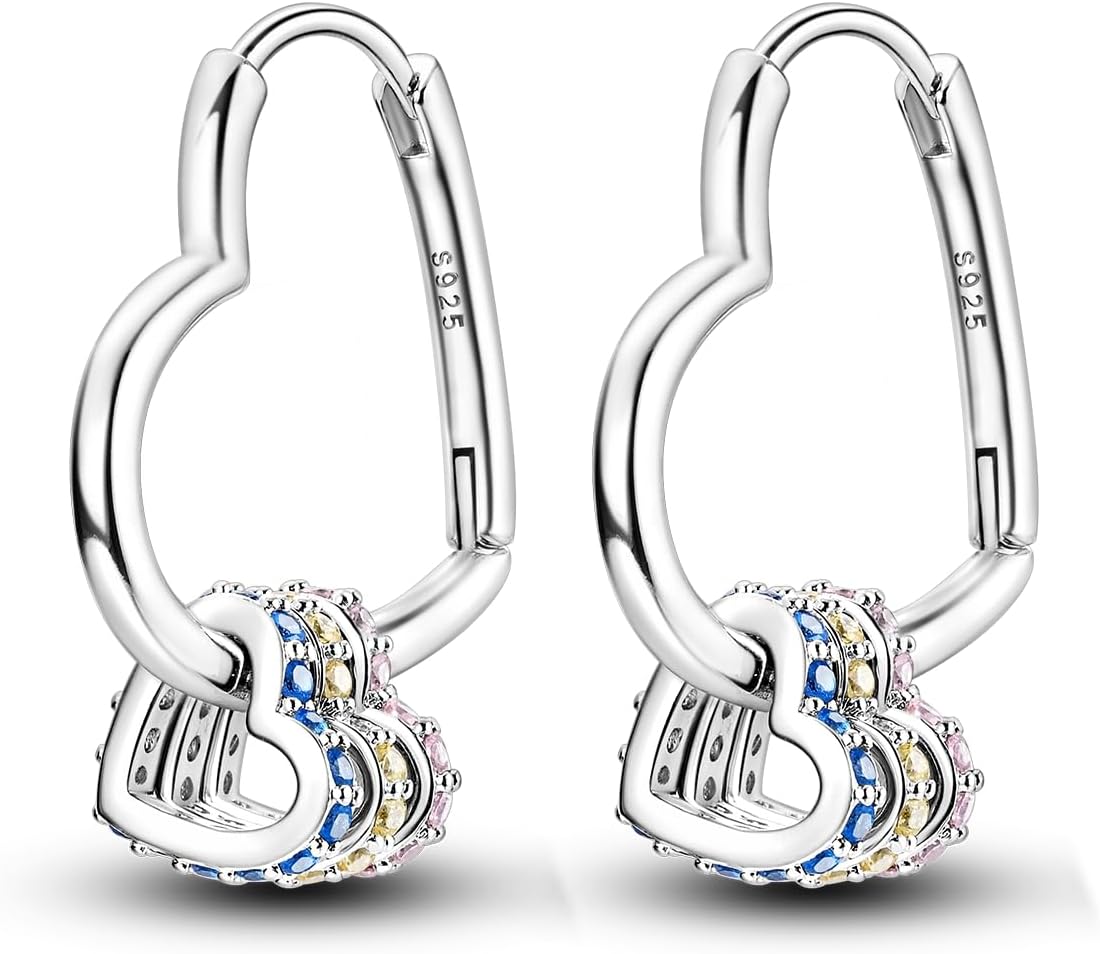 NARMO 925 Sterling Silver Heart Earrings for Women Pink Dangle Hoop Earrings Colorful Cubic Zirconia Earrings Silver Hoops Jewelry Gifts