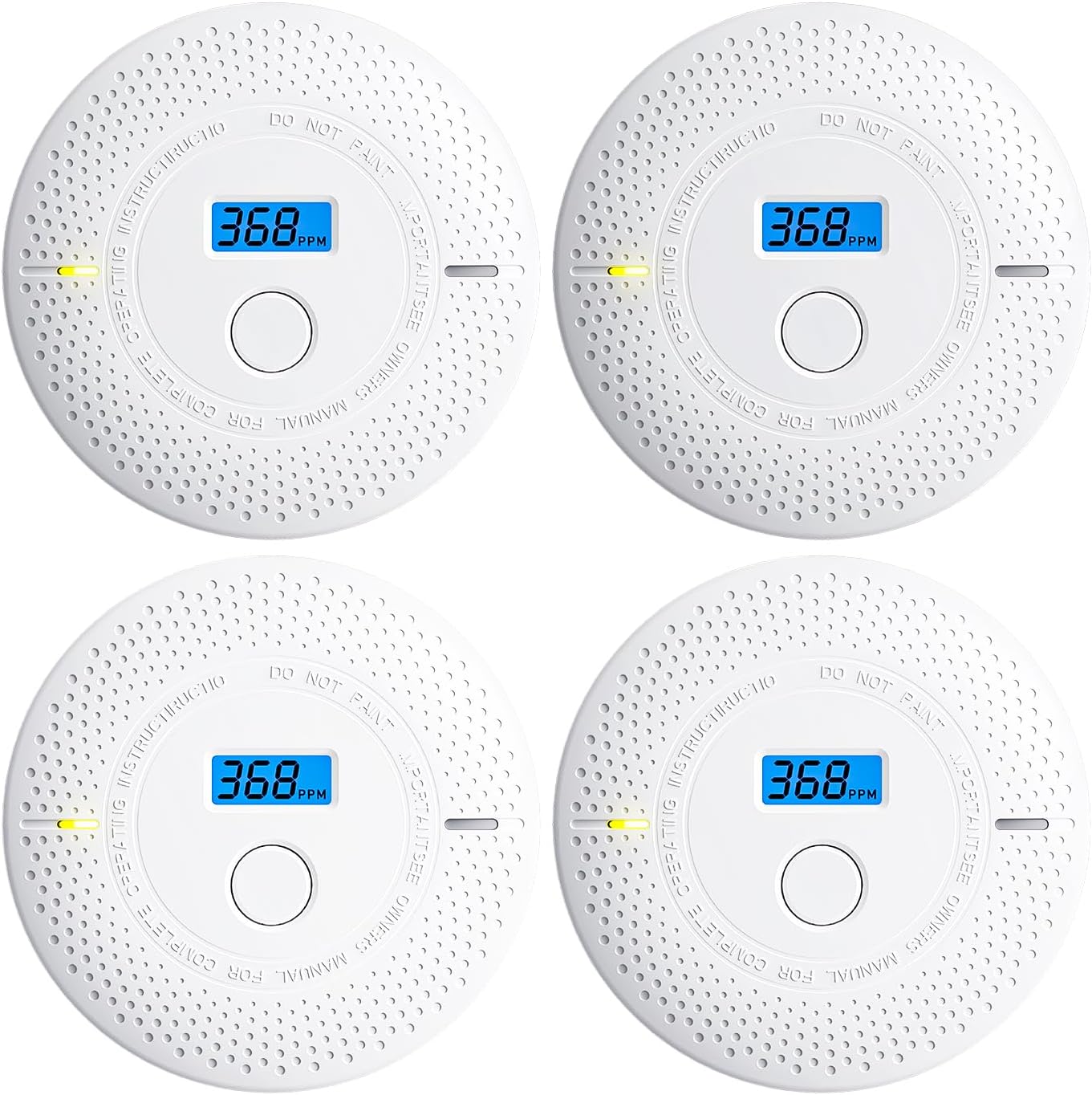 Smoke and Carbon Monoxide Detector, 2 in 1 Smoke Detector, LED Warning Light Indicators, 10 Year Battery (White), 4 Pack