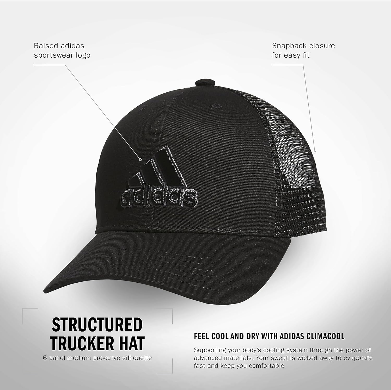 This adidas trucker hat is made with cotton plus mesh panels for a soft feel and added air flow. Simply adjust it at the back for a secure fit when you're on the move. A raised Badge of Sport completes the look.