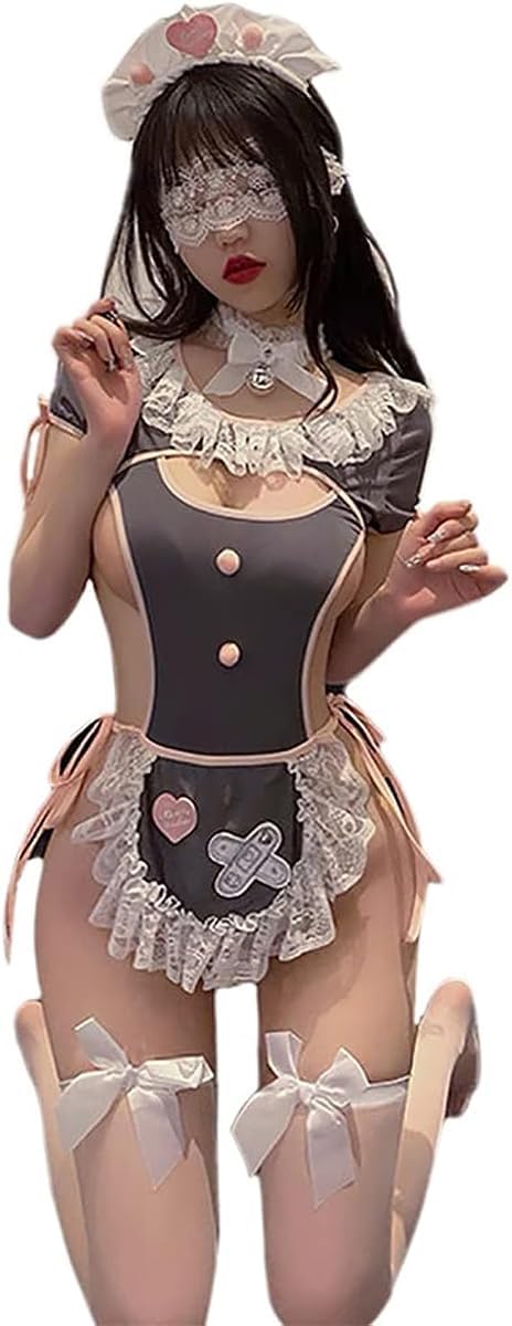 SNOMYRS Maid Outfit Anime Cosplay Costume Japanese Sweet Apron Fancy Kawaii Lace Up One Piece Lingerie Bodysuit
