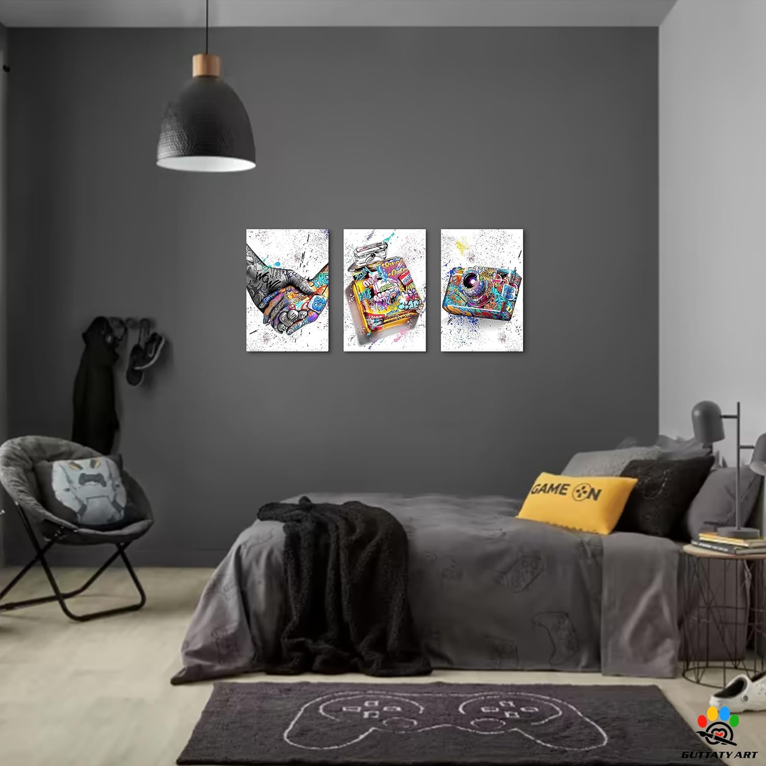 3-Pieces Graffiti Wall Art - Pop Street Art Decor For Teen Boys' Bedrooms - 12"x18" Framed Canvas