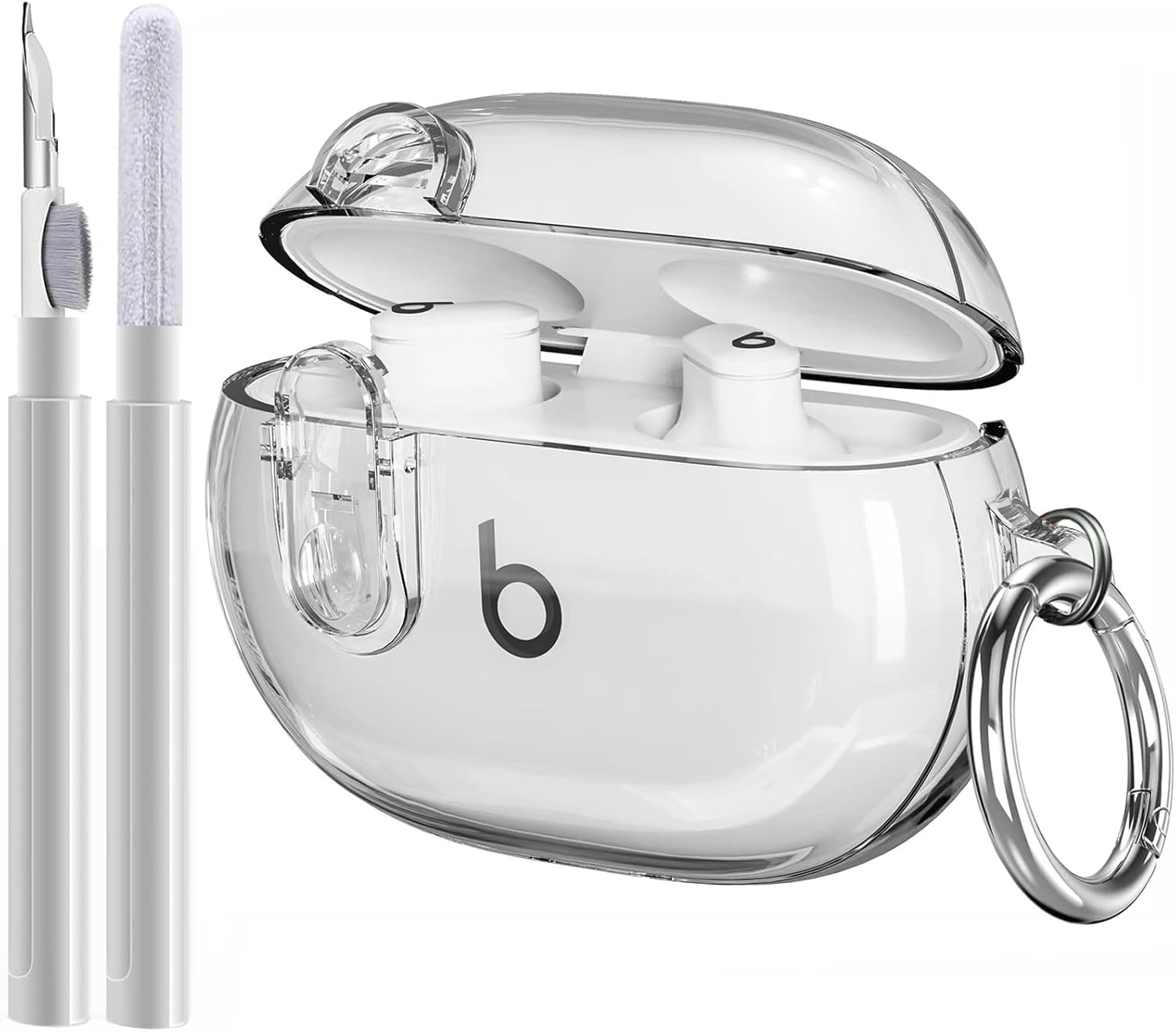 Beats Studio Buds/Studio Buds Plus Case Cover Clear 2021/2023 Men Lock Clip with Cleaner Kit, GARTOO Protective Case for Women Girls Kids Clear