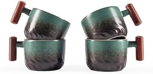 2.5oz Ceramic Espresso Cups with Wooden Handle, Small Coffee Cups Double Shot Espresso Cups Set of 4