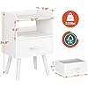 Yoobure Modern Nightstand with Drawer, Bedside Tables, Mid Century Nightstands with Open Storage Shelf, Wood Bedside Table, Small Night Stands for Bedrooms, 2-Tier Night Table