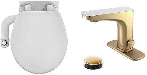 BUNDLE INCLUDES: (1) Bemis Round Toilet Seat, (1) Bio Bidet SlimEdge Bidet Attachment and (1) Grove Motion Activated Hands Free Bathroom Faucet in Champagne Finish; items may ship separately
