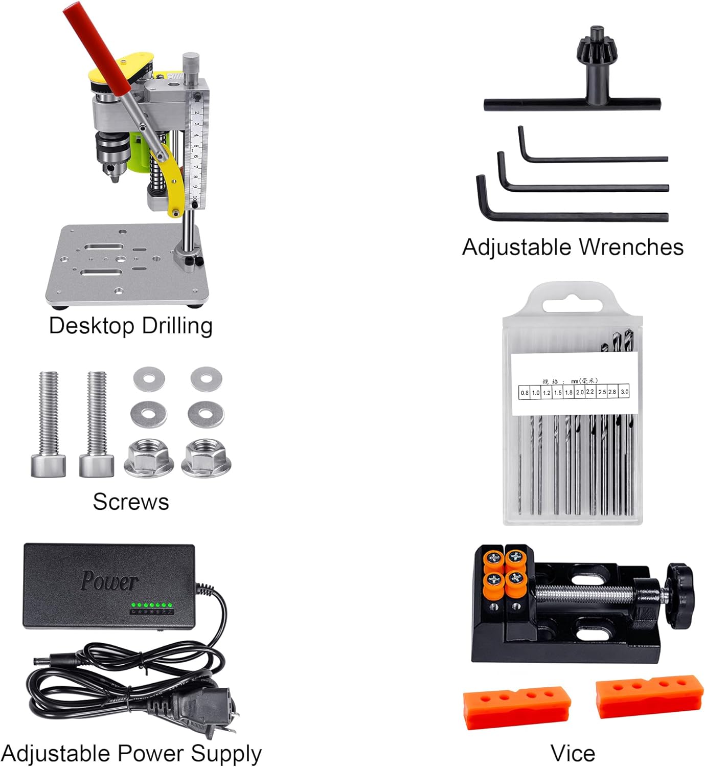 Mini Drill Press, Benchtop Drill Press, Portable Electric Drilling Machine, CNC 795 Motor, B10 Chuck, Drill Bit and Clamp for Metal Wooden Jewelry DIY and Crafts Projects