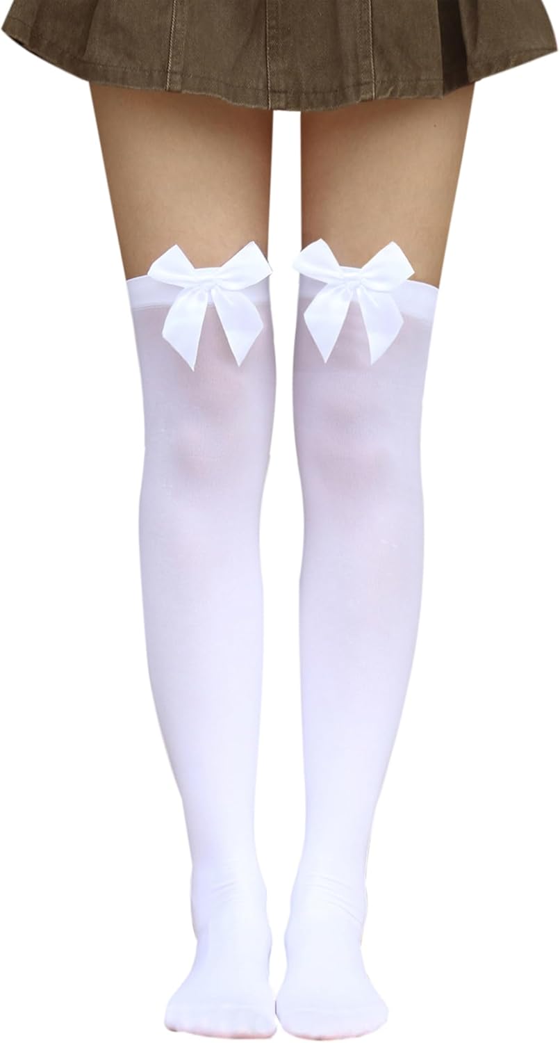 Bestjybt Women's Satin Bow Stockings Thigh High Over Knee Stockings