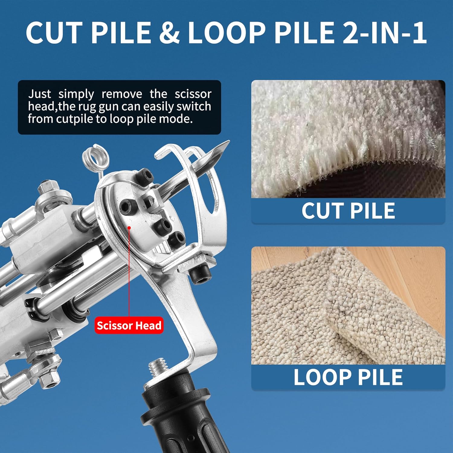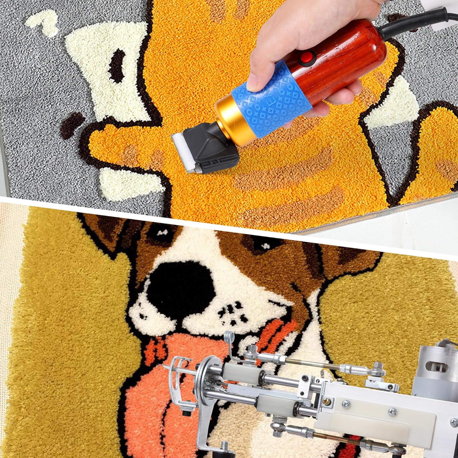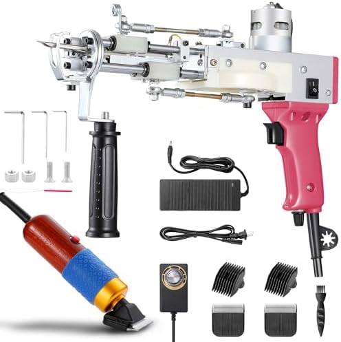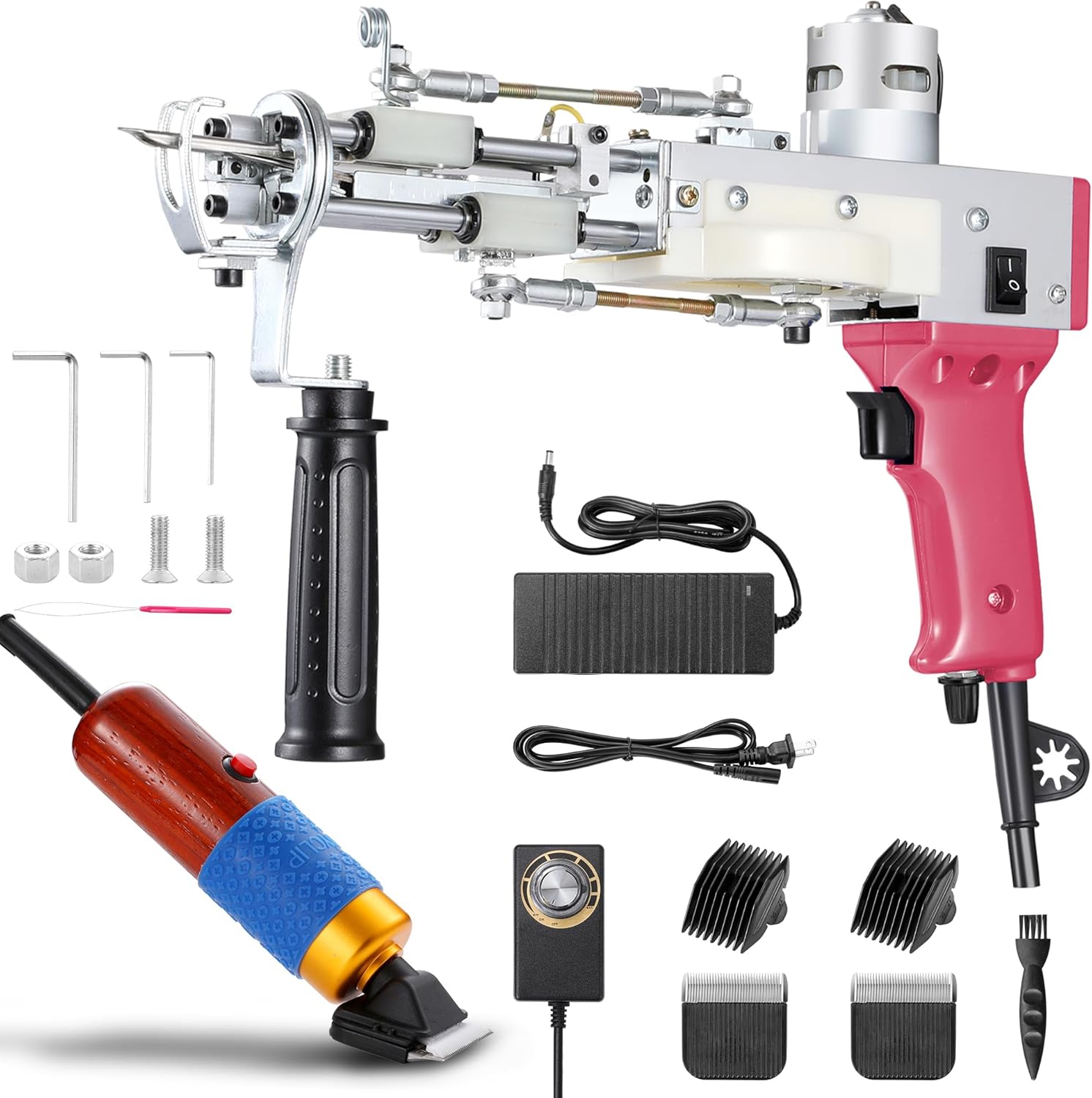 Pistola de tufting para alfombras y kit de recortador, Pistola de alfombra de corte y bucle de 2 en 1 y tijeras de tallado de alfombras, Kit de inicio para hacer alfombras, Kit de inicio para máquina de alfombras para principiantes (rosa)