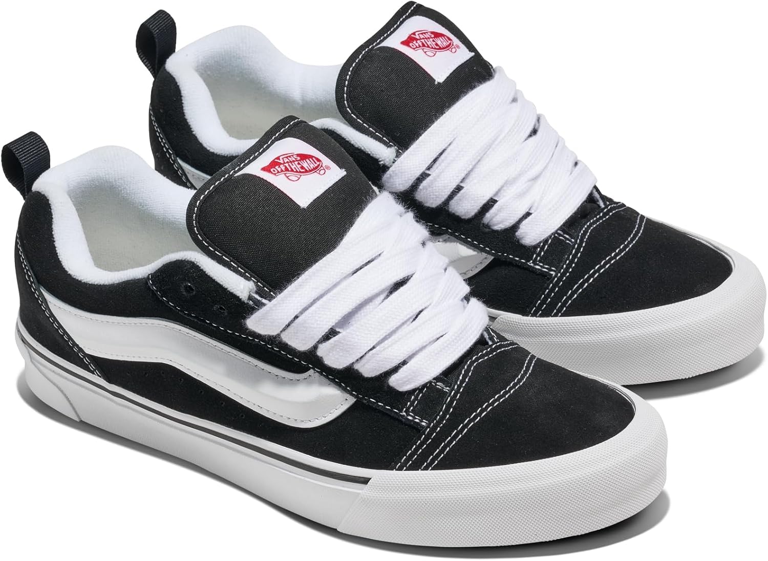 The Vans Knu Skool revives a late-’90s icon with bold attitude and everyday wearability. Inspired by the original Old Skool silhouette, this low-top fashion sneaker for men and women exaggerates the details that defined an era – wide laces, an oversized puffy tongue, a plush collar, and a 3D Sidestripe that brings a throwback edge to any outfit. Sturdy suede and canvas uppers deliver lasting durability, while Vans' signature rubber waffle outsole offers dependable grip and flexibility for whatever the day brings. These men's and ladies' sneakers are comfortable right out of the box, featuring padded tongues and collars for a snug, soft feel that reduces rubbing while walking. Built with Vans’ vulcanized construction, these lifestyle shoes are designed to keep up, whether you’re commuting to the office, heading to a concert, or just kicking back. Off The Wall since 1966, Vans continues to inspire creativity and individuality.