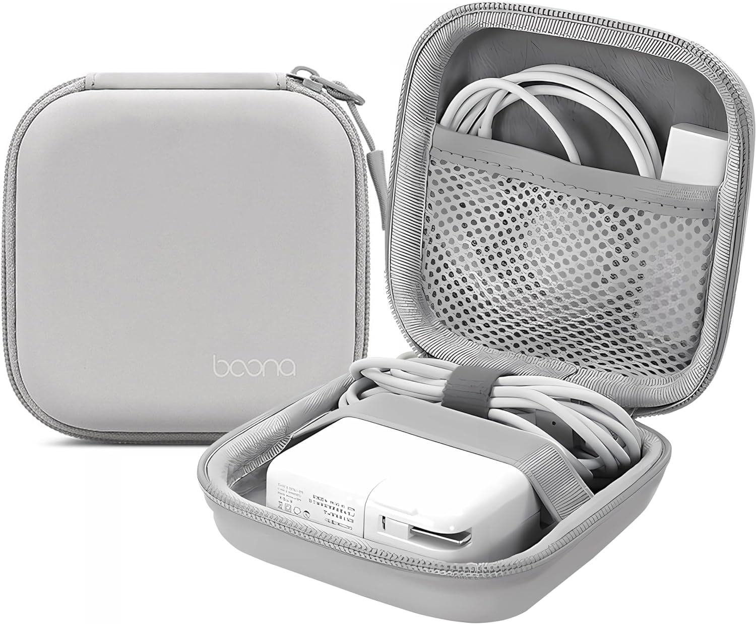 【HIGH-QUALITY MATERIAL】This Apple power storage bag is made of durable and waterproof EVA, with an excellent mesh pocket and anti slip grip elastic ring inside to ensure that the rope is fixed in place. The travel storage bag is sealed with a high-quality zipper for quick access and management.