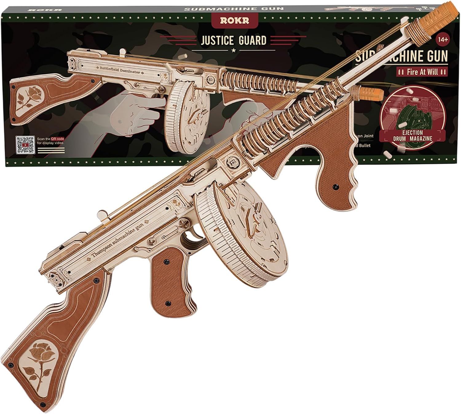 ROKR 3D Wooden Puzzles for Adults-Rubber Band Toy Tommy Gun-Model Kits to Build for Adults-Wood Puzzles Adult-Hobbies for Men-Gift Idea for Christmas