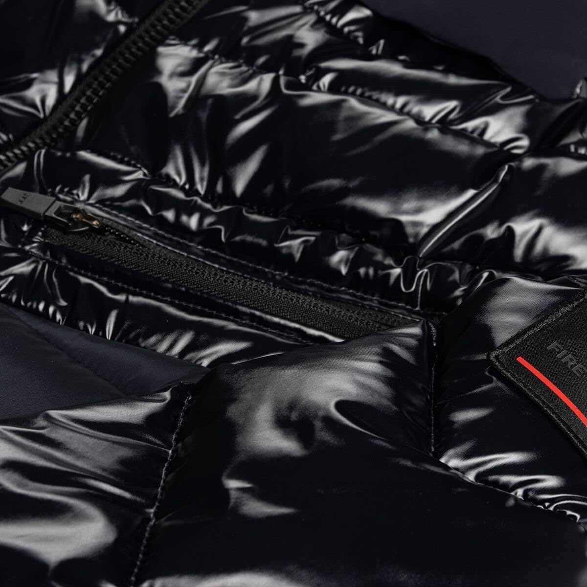 Enjoy style and performance with the Fire + Ice Farina3-D Down Ski Jacket. This premium piece is made from 100% high shine polyamide Nylon taffeta and combines a relaxed fit with superior warmth, thanks to its 600 fill power ecodown insulation. Designed to repel water, the jacket keeps you dry even when the weather doesn't cooperate. Additional features like thumbhole wrist gaiters and a removable hood provide an extra layer of protection, while a built-in powder skirt helps prevent snow intrusion during your mountain adventures. The jacket also has a ski pass pocket for easy access, and multiple zippered pockets for secure storage. The Farina3-D Down Ski Jacket is a top-notch choice for any winter wardrobe.