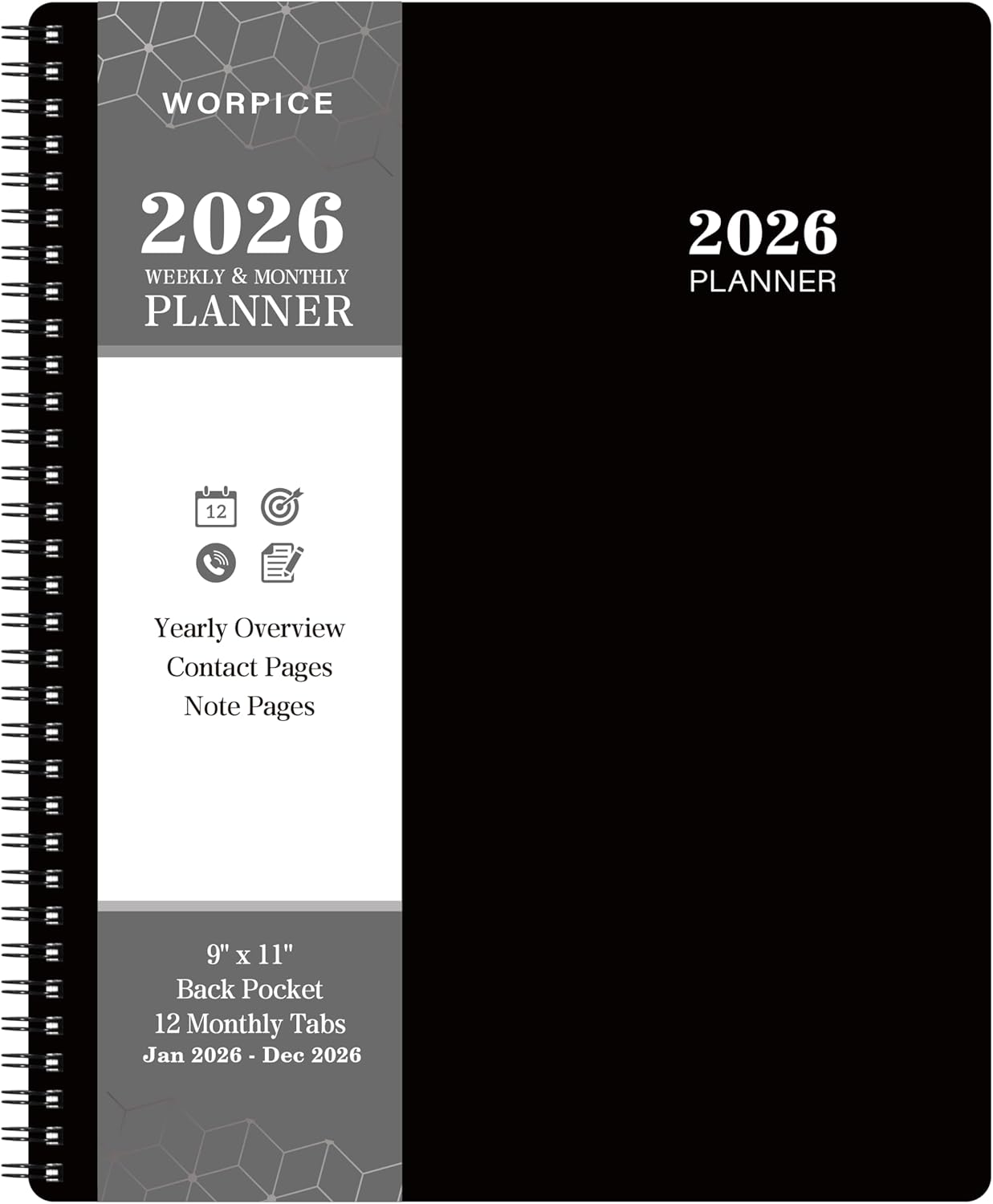 2026 Planner - 9” × 11”, 2026 Weekly and Monthly Planner, from JAN. 2026 to DEC. 2026, Inner Pocket, Premium Paper, Twin-wire Binding, Make Your Life Productive - Black
