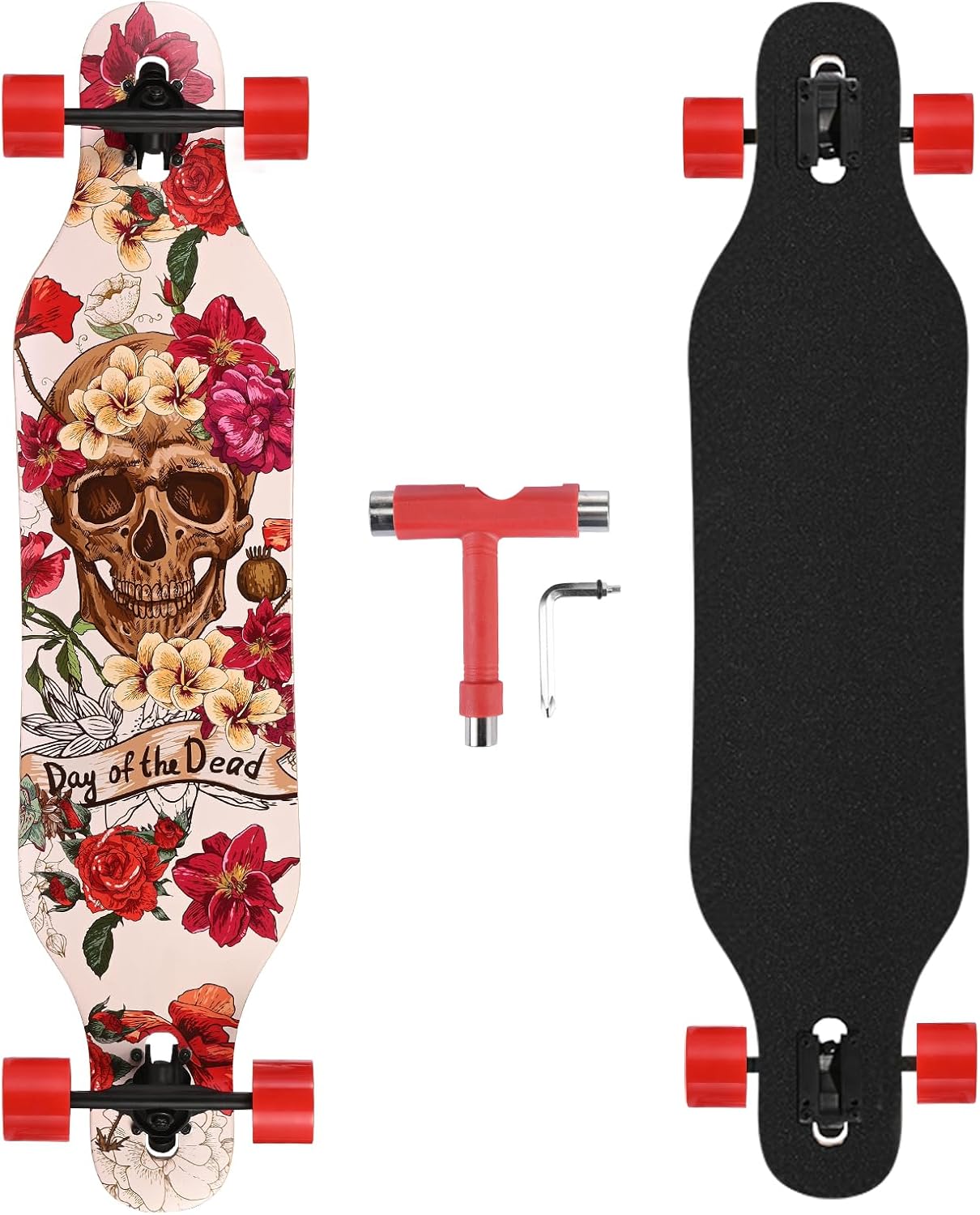 41 inch Freeride Longboard Drop Through Skateboard 8 Ply Canadian Maple Complete Cruiser for Cruising, Carving, Free-Style and Downhill