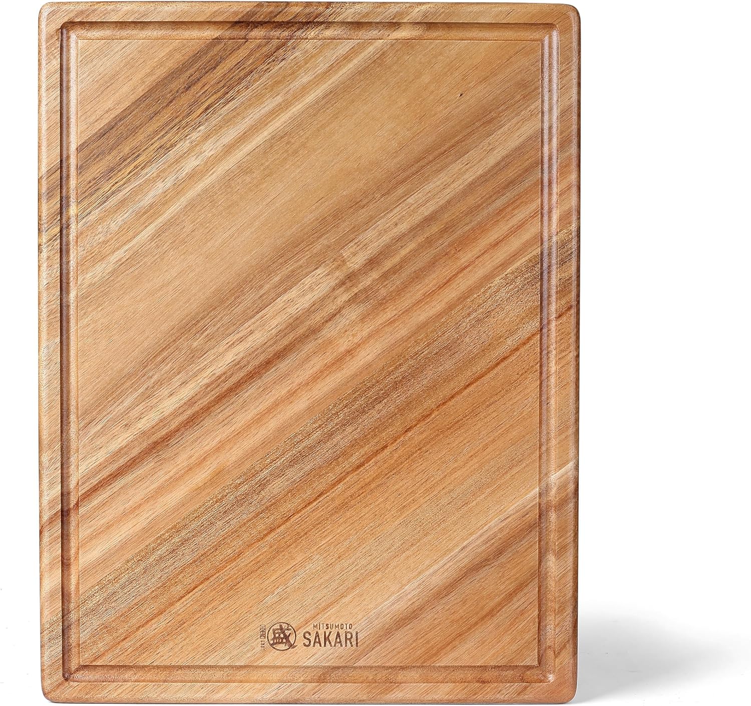 MITSUMOTO SAKARI Japanese Acacia Wood Cutting Board, 16 × 11 in Kitchen Cutting Board for Meat Vegetables Cheese, Pure Natural Textured Chopping Board with Juice Groove
