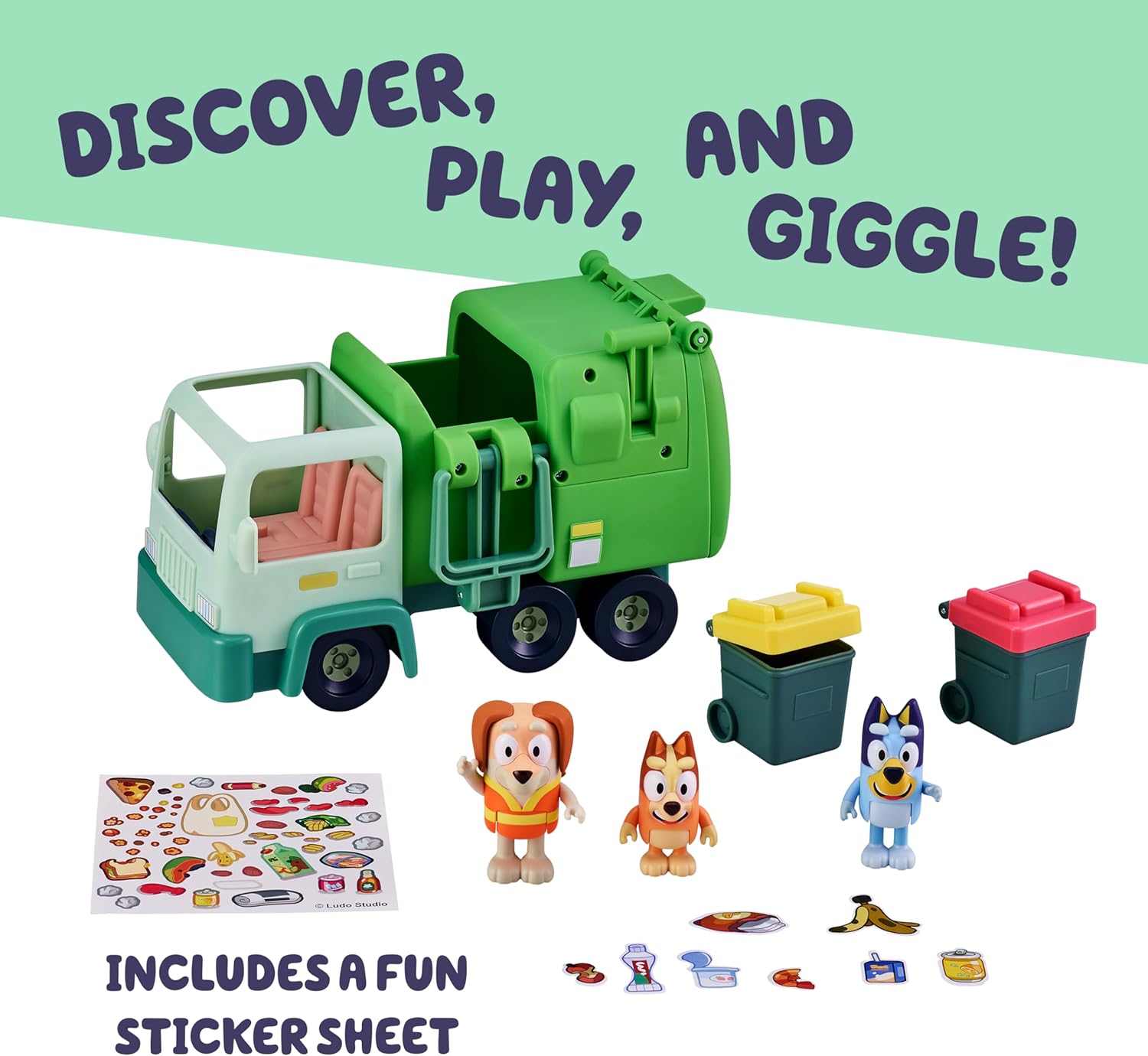 Conjunto de Juguete de Camión de Basura Bluey, Figuras de Bingo, el Hombre del Basura | Playset Exclusivo de Amazon para Niños a partir de 3 años