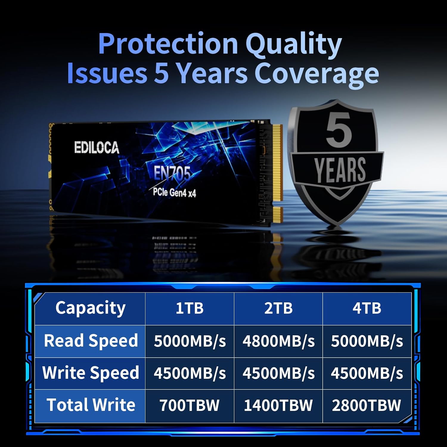 【Trusted Storage Solution】Backed by Ediloca's 5-year limited warranty and US-based technical support. Kit includes installation screwdriver, mounting screw, and illustrated multilingual guide. 30-day hassle-free returns guaranteed.Ediloca is committed to providing comprehensive storage application solutions to global customers.If you have any questions about this NVMe SSD, we will provide you with technical support services.
