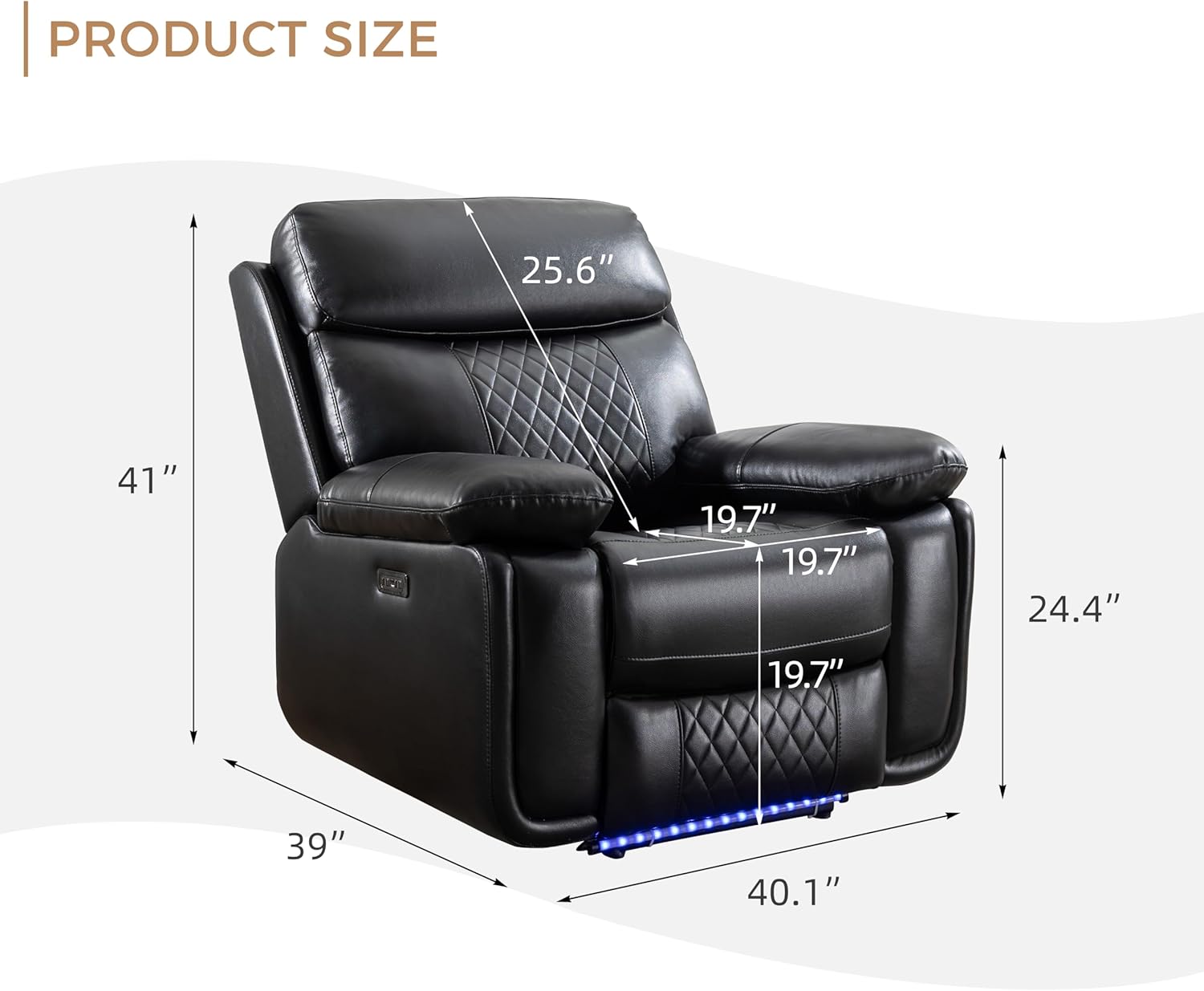 Attractive LED strips: The striking LED floor strip on the bottom of the electric reclining chair illuminates your living space and brings a home theater atmosphere to your living space. It can be easily controlled on or off through buttons. The electric recliner helps you relax while getting into the mood for drama and action