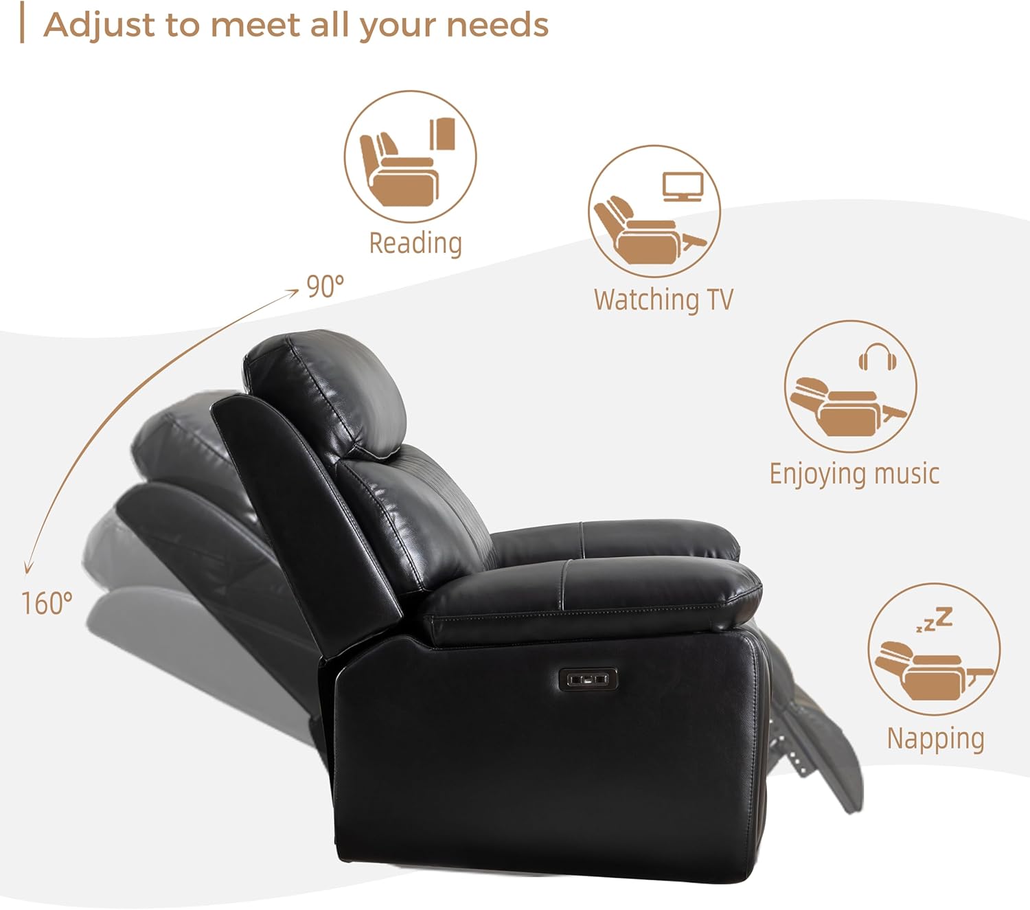 Indulgent Comfort: The power recliner chair is covered with high-quality faux leather and equipped with strictly tested electronic and mechanical components, making it soft and durable for long-term use. Easy to clean and maintain in daily use. Its quality and durability will ensure your perfect enjoyment. The upgraded design of the RV recliner and the features you've been dreaming of will give you incredible comfort