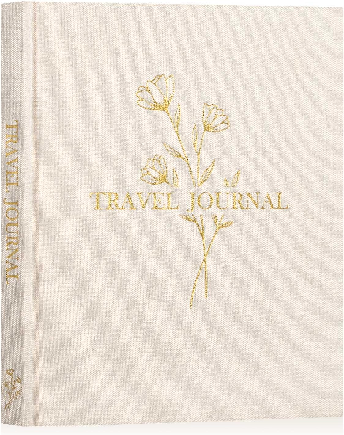 【Premium Quality】Hard covered in natural linen with gold embossed titles and spine for a scratch-resistant finish. Crafted with thick 140gsm paper, the travel diary ensures a smooth writing experience without smudge or bleed-through worries