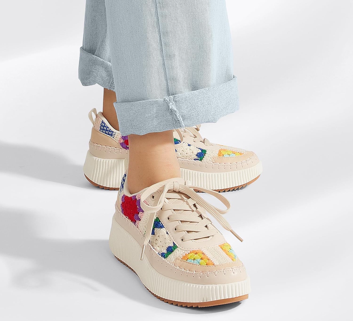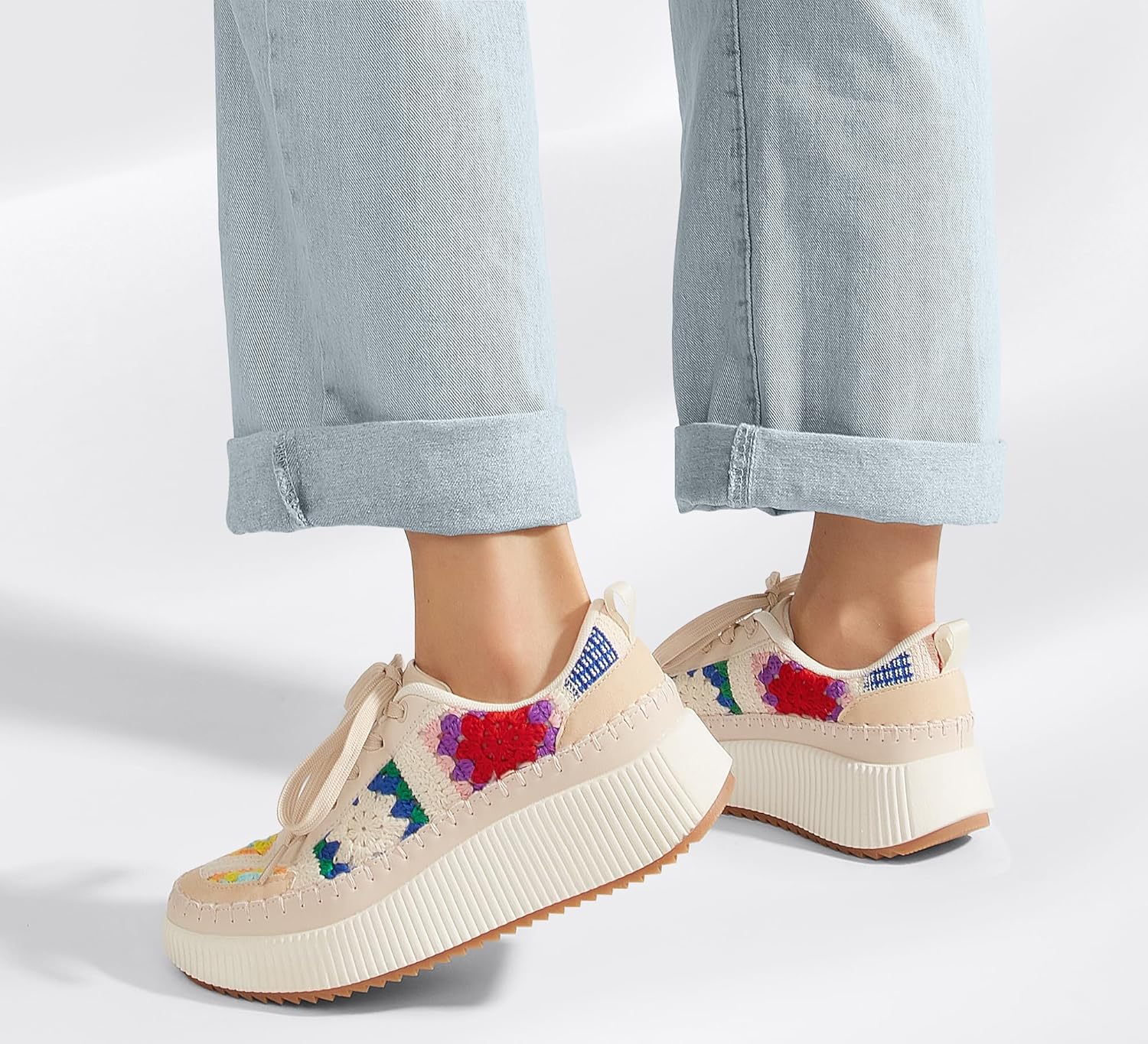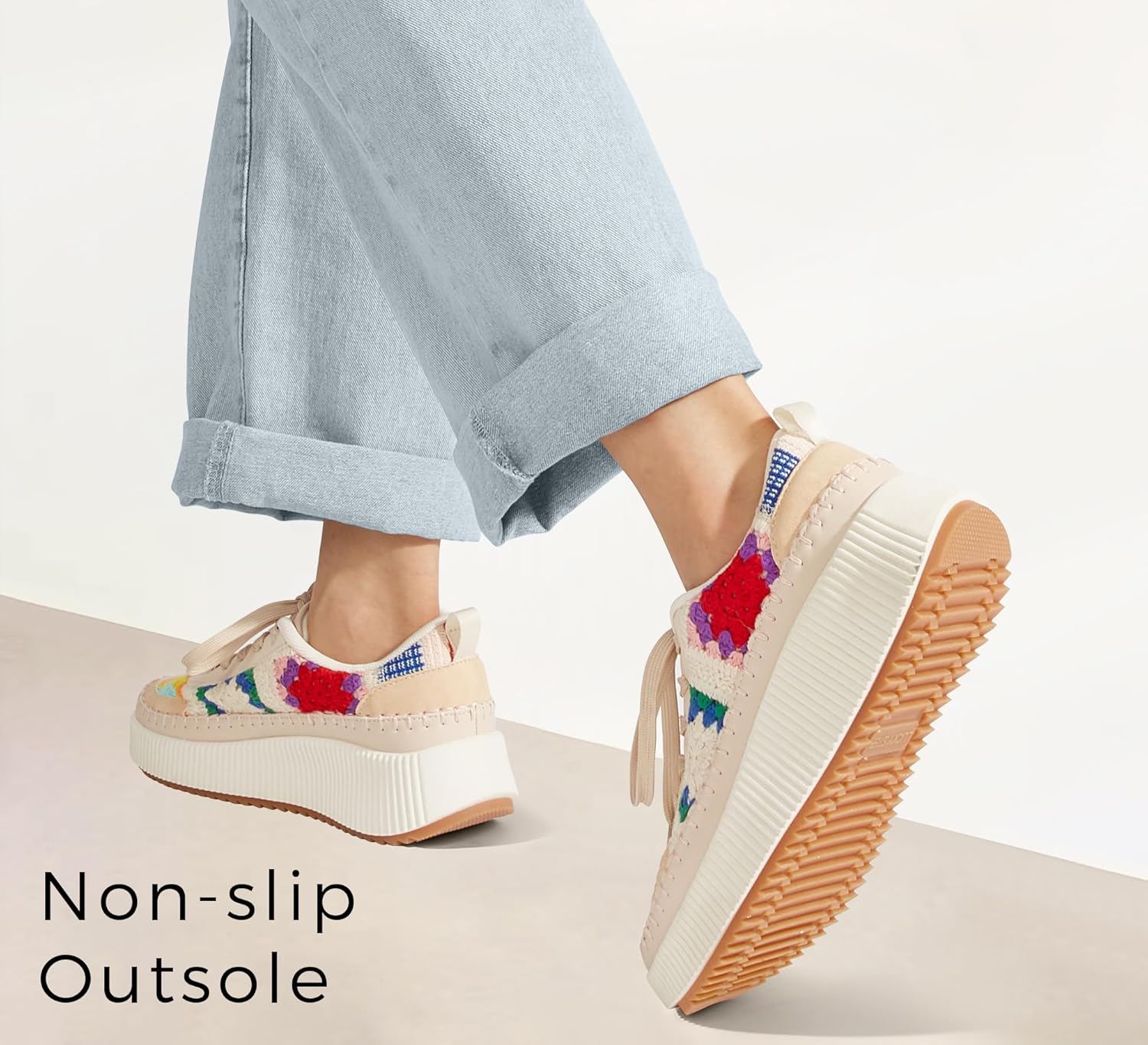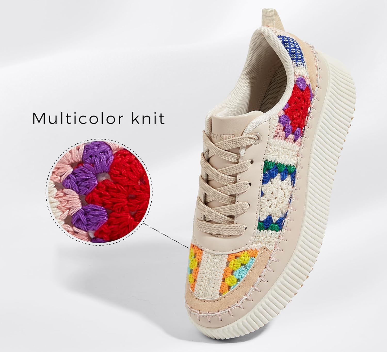 LUCKY STEP Women's Platform Sneakers Rhinestone Fashion Chunky Casual Sparkly Retro Braided Walking Shoes