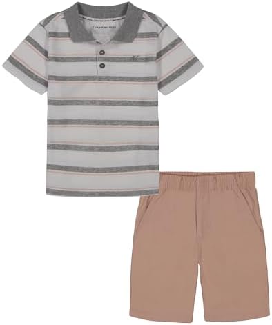 Calvin Klein girls 2 Piece Knit Woven Short Set