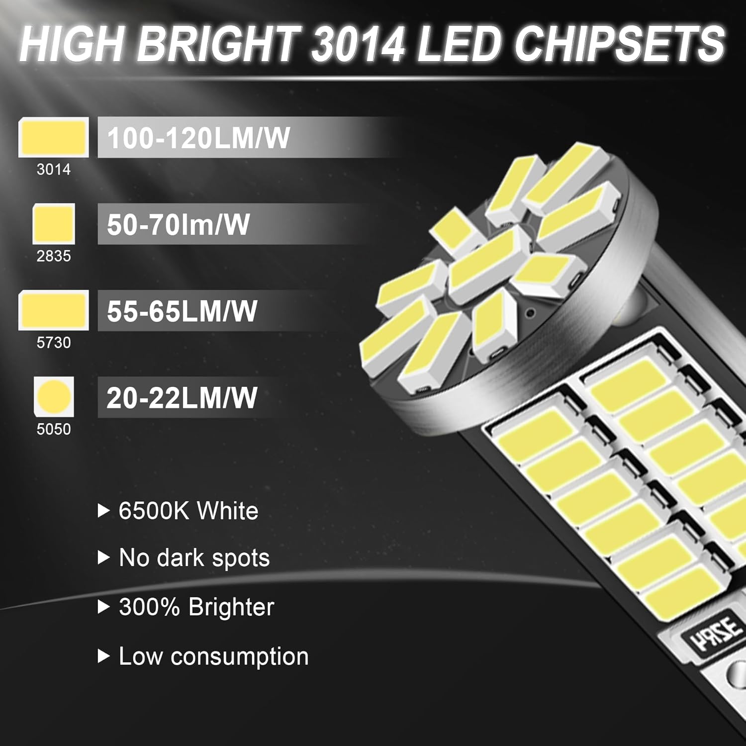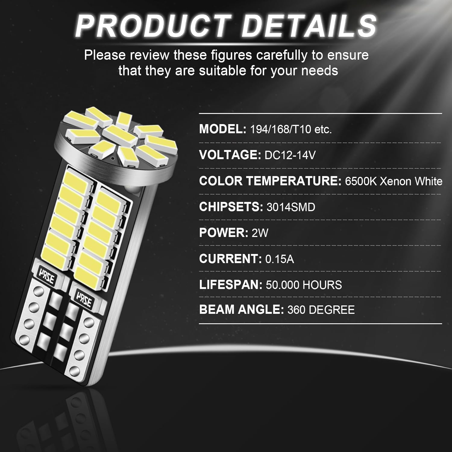 300% Brighter: Our 194 bulb has 34 pieces of 3014 led chips on it, 360 degree lighting angle, no blind spot.