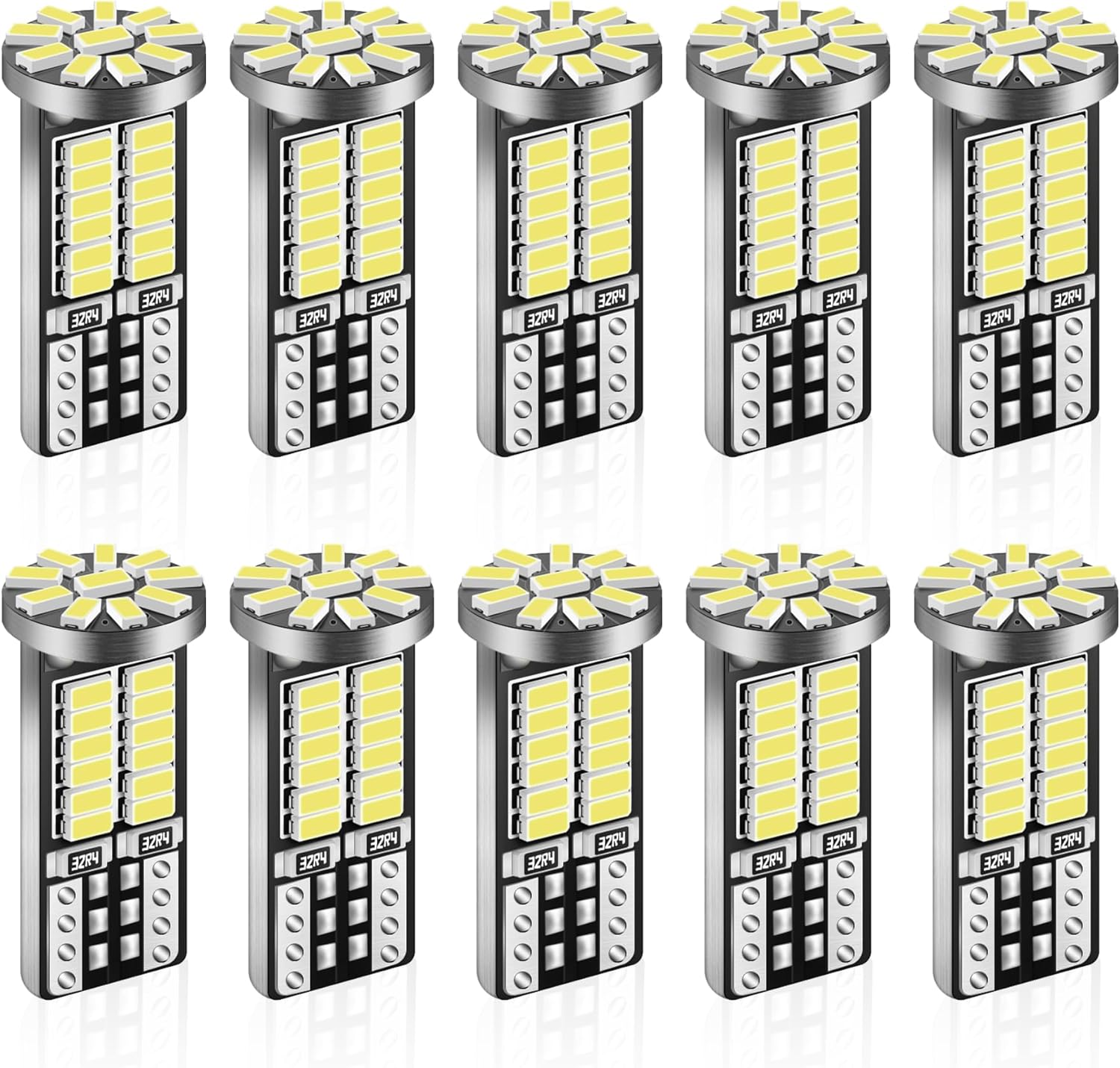 10 Pieces 194 LED Bulb Super Bright 6500K T10 168 2825 W5W 34-SMD 3014 Chipsets Replacement Bulbs for Car Trunk Interior Dome Map Door Dash Courtesy License Plate Lights - Xenon White