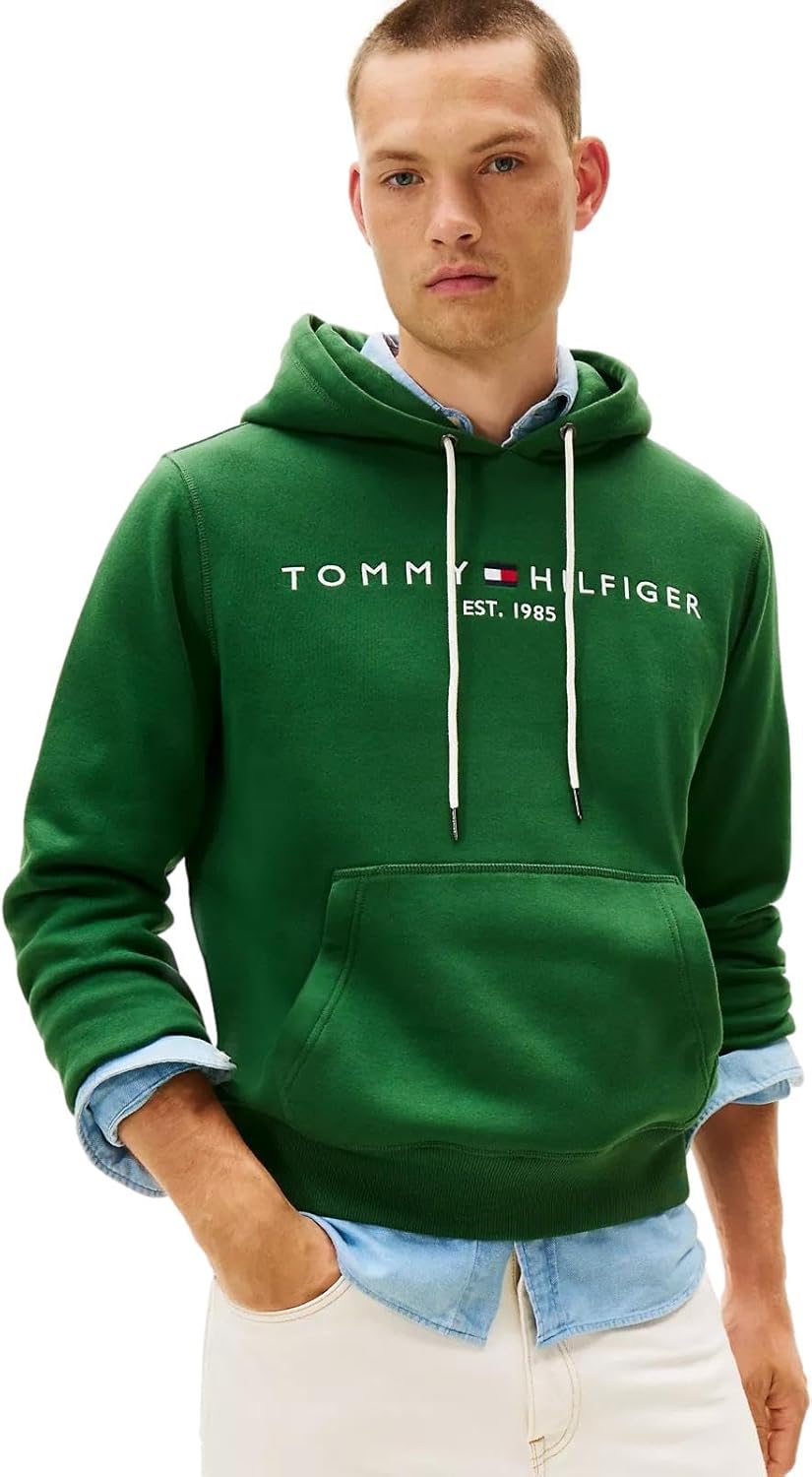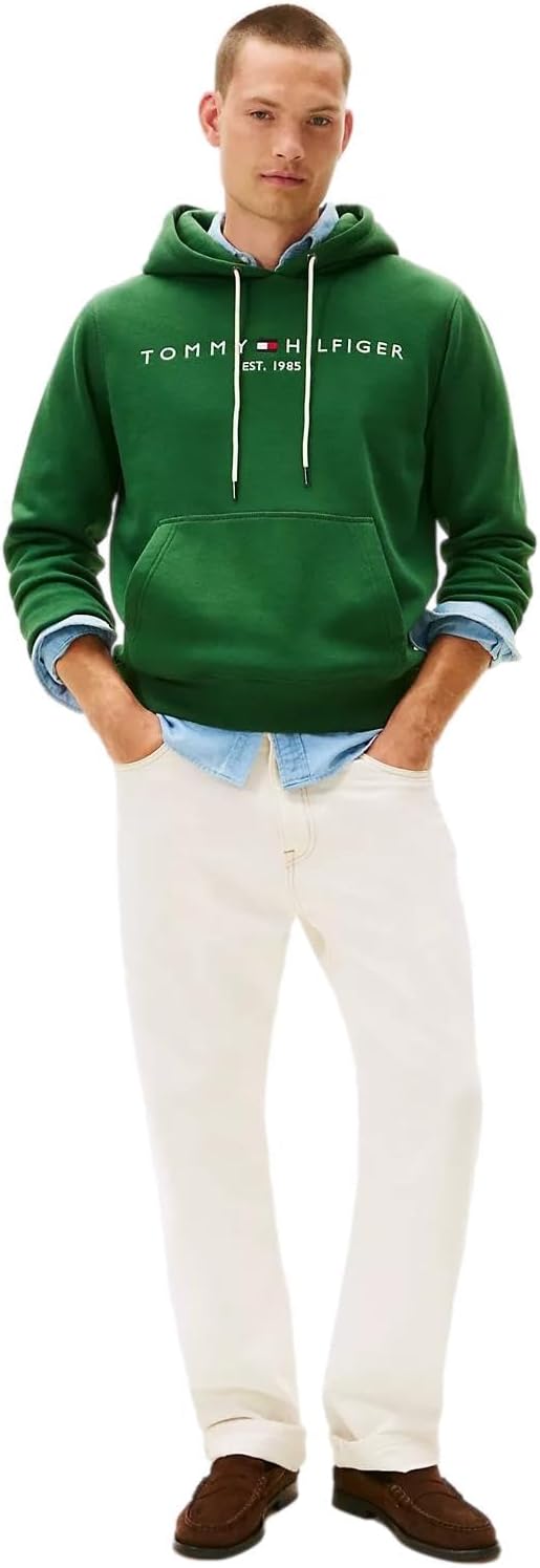 Sudetera con capucha para hombre de Tommy Hilfiger. Hecha de nuestra famosamente suave lana, y con un corte cómodo, nuestra sueter con capucha del logo Tommy es tan cómoda como elegante.