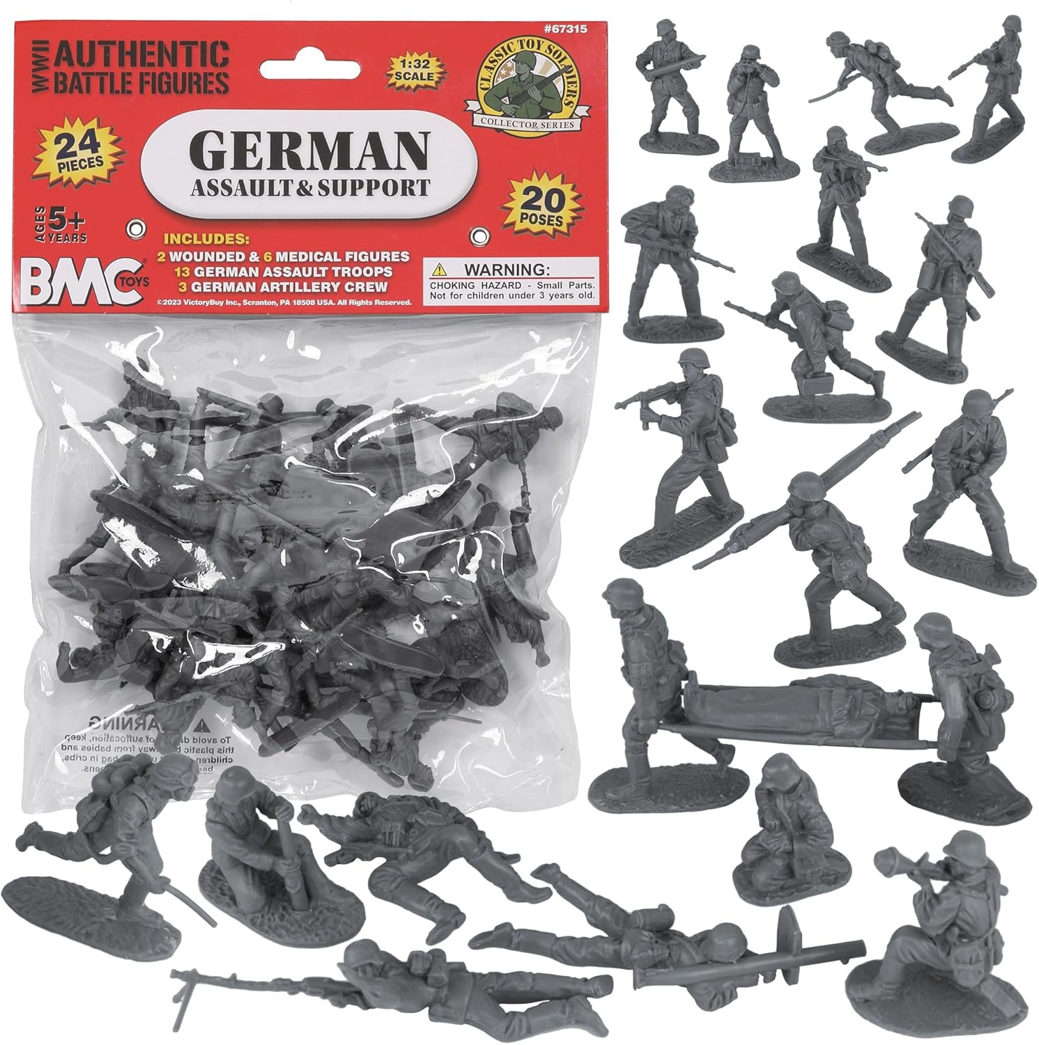 BMC CTS WW2 German Assault & Medics Plastic Army Men - 24pc Gray Soldier Figures