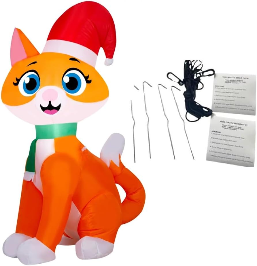 Delight guests and passersby with an Air-blown Inflatable! This charming Christmas Kitten inflatable makes a delightful addition to your decorations. Lights with energy-efficient LED lighting. Setup is super simple. Just plug it in, stake it down and watch the magic unfold. Display this outdoor decoration as a standalone or combine it with other Inflatables to create a custom scene. It's also perfect as an indoor decoration for parties and celebrations. Includes everything needed for easy setup. Set up is a snap for the easiest holiday decorating ever. Just plug it in, stake it down and watch the magic unfold. Assembled Product dimensions: 29.53 x 32.28 x 42.13 Inches. For Indoor/Outdoor use. Includes light-up inflatable, stakes and tethers. Also includes a Bonus PITCHING PIGEON Brand Repair Patch - Accidents happen, so we got you covered just in case!