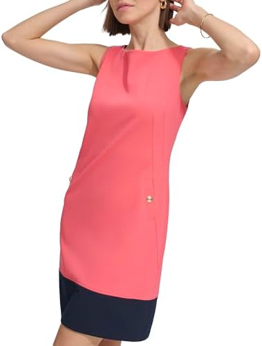 This Tommy Hilfiger Women's Dresses is a Sleeveless Scuba crepe shift body Logo snap pockets Colorblock