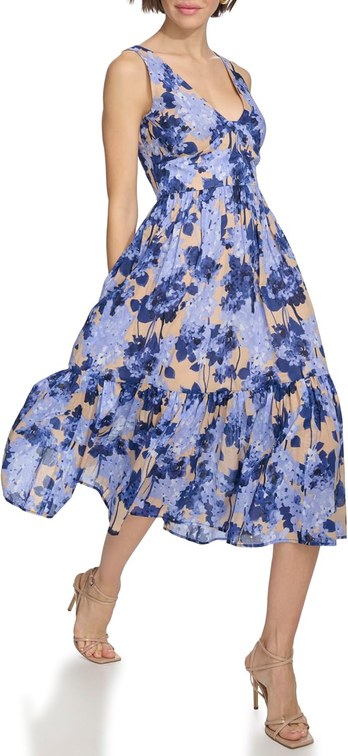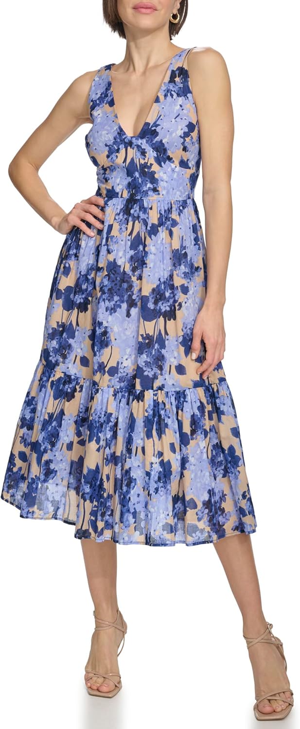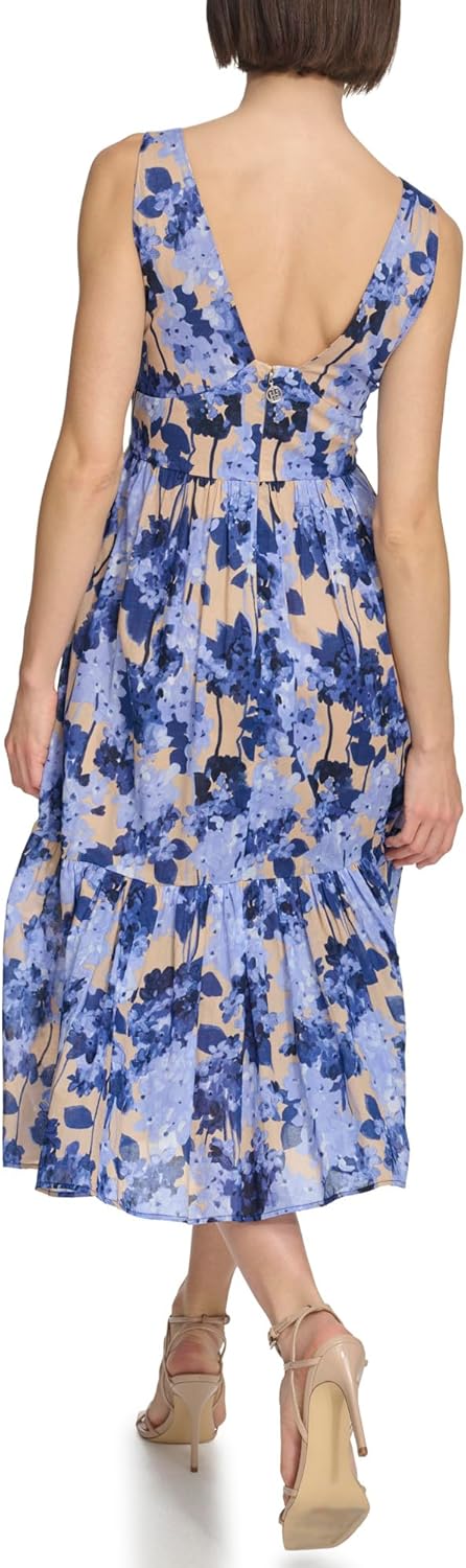 This Tommy Hilfiger Women's Dresses is a Cotton voille fabric Tiered midi dress Sleeveless V-neckline