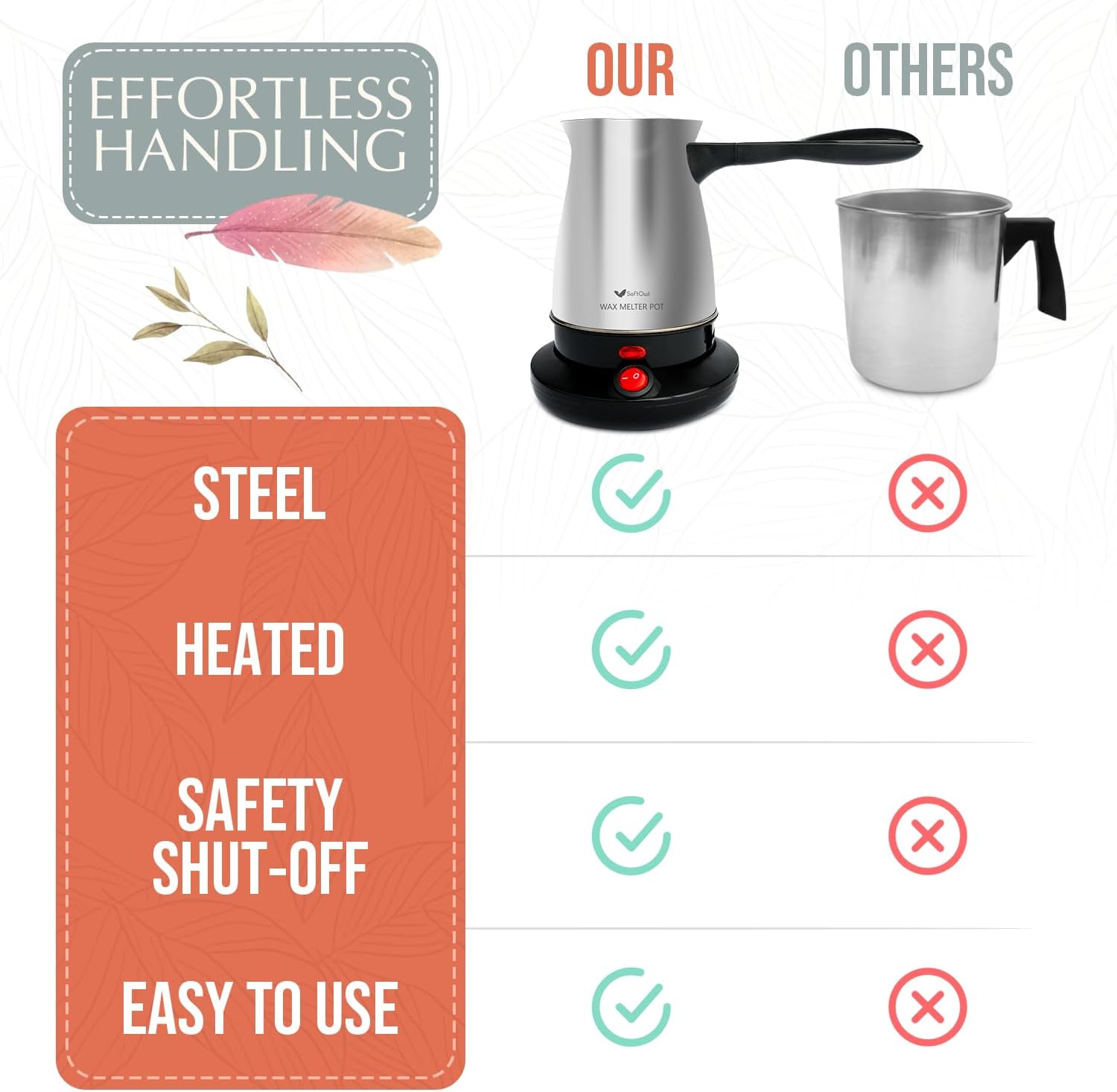 💛 EASIER TO USE: Unlike wax pouring pitchers that need to be heated up on a stove with no control over the temperature, or cheaply made plastic wax melters with cables far too short to be practical, our kettle can be removed from the electric base for easy wax pouring, wherever you need it
