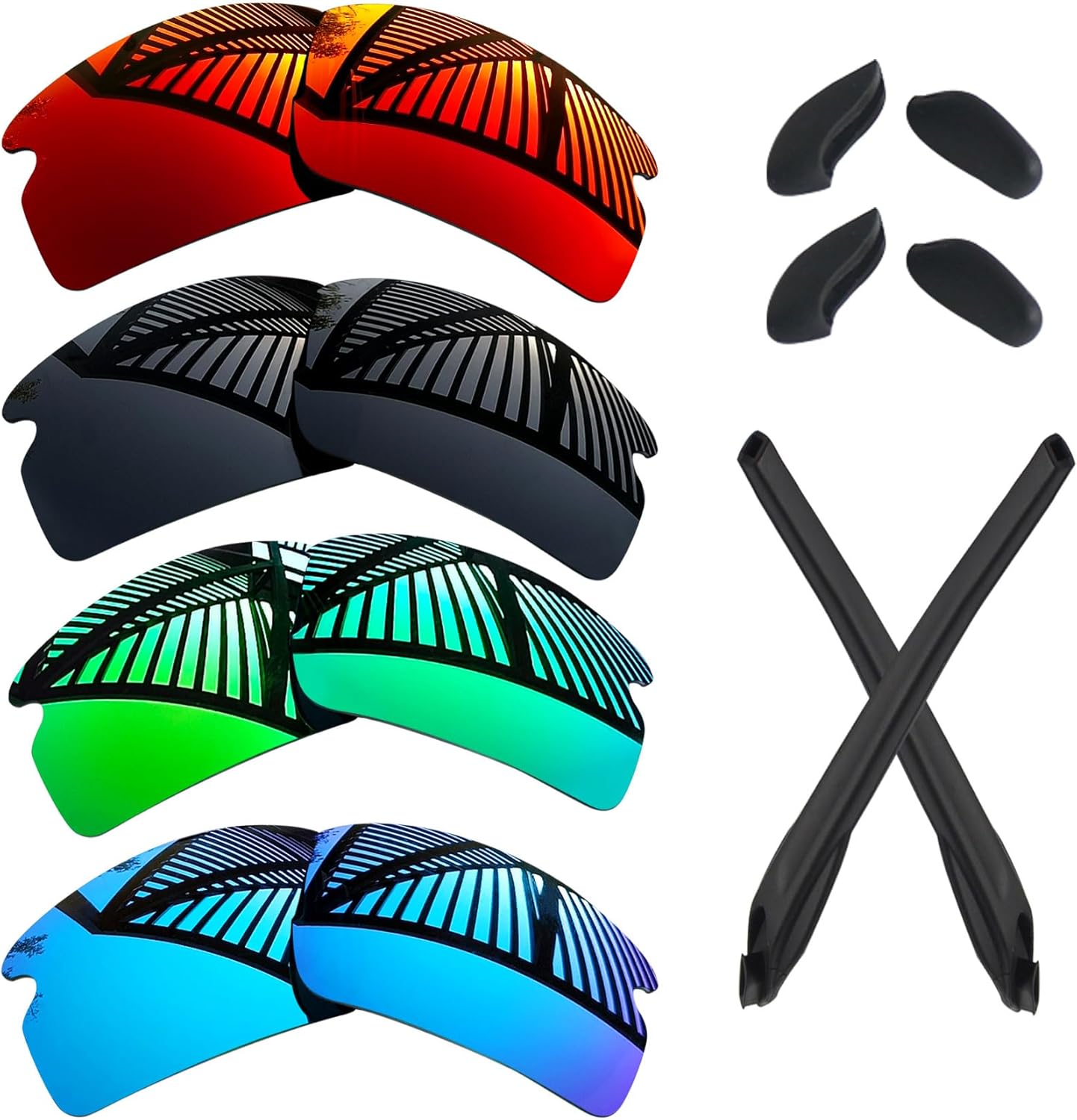 4 Pairs Replacement Lenses&Rubber Kits for Oakley Flak 2.0 XL OO9188 Sunglasses - Solid Black+Emerald+Ice Blue+Fire Red
