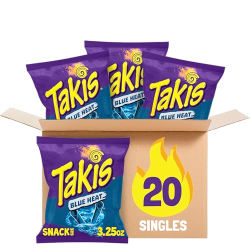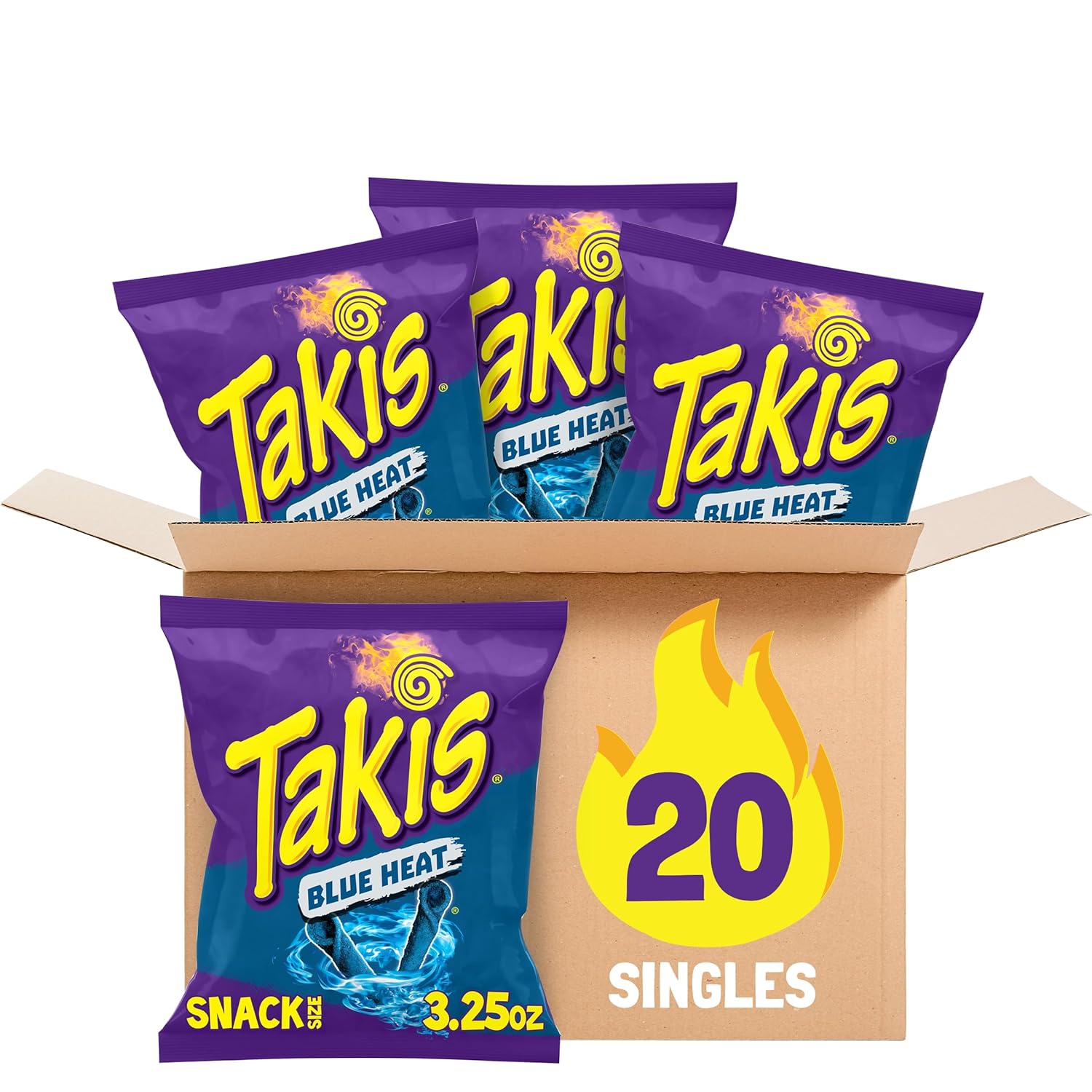 Takis Blue Heat 20 ct, 3.25 oz Snack Size Case, Hot Chili Pepper Flavored Extreme Spicy Rolled Tortilla Chips