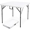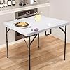 34" Square Folding Card Table, Fold-in-Half Utility Dining Portable Table Heavy Duty HDPE White Plastic Foldable with Carrying Handle Indoor Outdoor for Picnic, Camping, Party