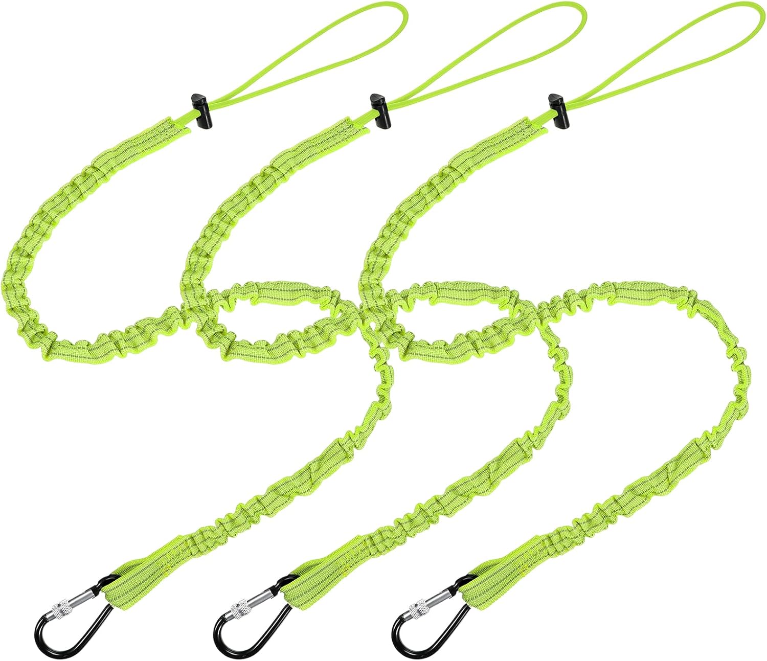 LEIFIDE 3 Pcs Tool Lanyard with Aluminum Screw Lock Buckle Retractable Bungee Cord 17.6lb 8kg Tough Adjustable Tether Tool Harness Fall Protection Tether for Construction(Green)
