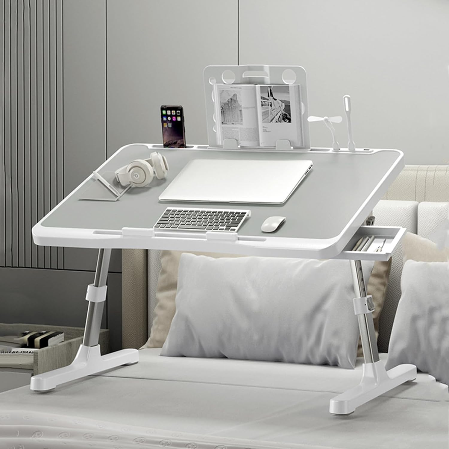 FOLDABLE LAPTOP DESK FOR BED: Light but sturdy, the adjustable laptop bed table can be fold flat for space-saving storage, When not needed, it can be stored under a couch, sofa and bed easily.