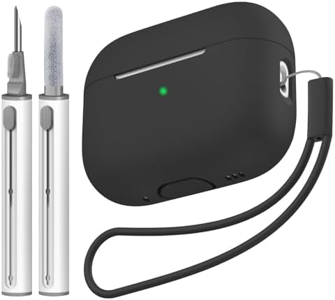 Compatible con funda para Airpods Pro 2, funda protectora de silicona suave con kit de limpieza y cordón compatible para AirPod Pro 2ª generación, LED frontal visible-Negro