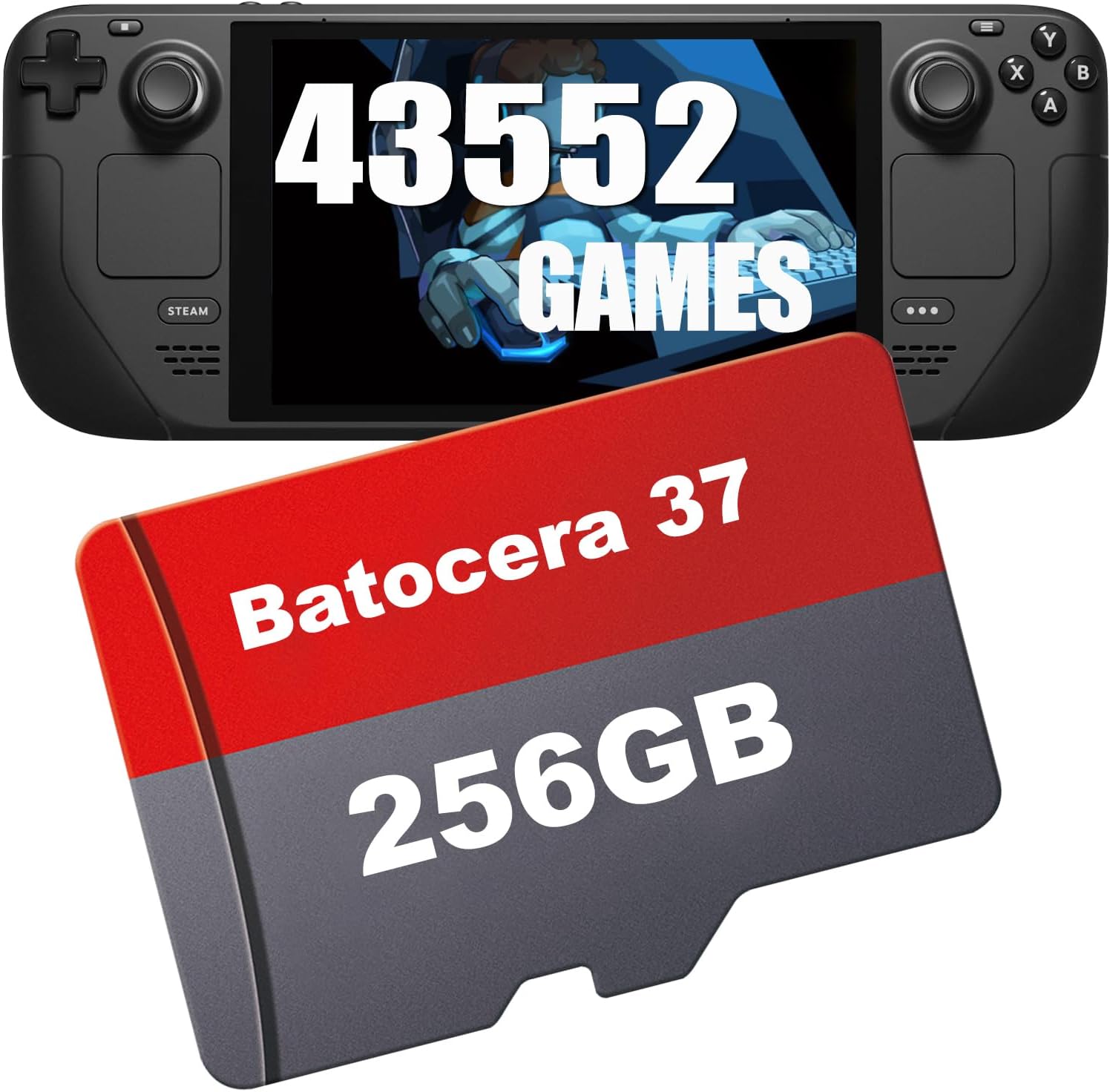 Retro Game Card for Steam Deck/Win 600 256G, 43552 Video Games and 73 Emulators Plug and Play, Compatible with MA-ME/PS-1/3/Wi, Batocera 37 Game System, Support USB3.0, A1 Performance