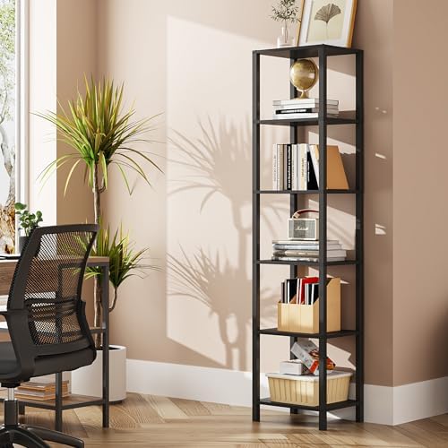 TUTOTAK Bookshelf, 6-Tier Tall Book Shelf, Narrow Bookcase for Small Space, DIY Stackable Bookshelf, for Living Room, Office, Study, Entryway, Industrial, Black BS01BK006