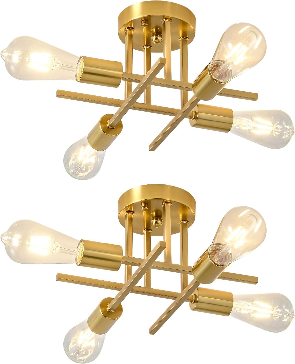 EGM 4-Light Bedroom Light Fixture, Gold Sputnik Ceiling Light Fixture with E26 Bulb Base, Modern Semi Flush Mount Ceiling Lamp for Dining Room Foyer Kitchen Living Room (2 Pack)