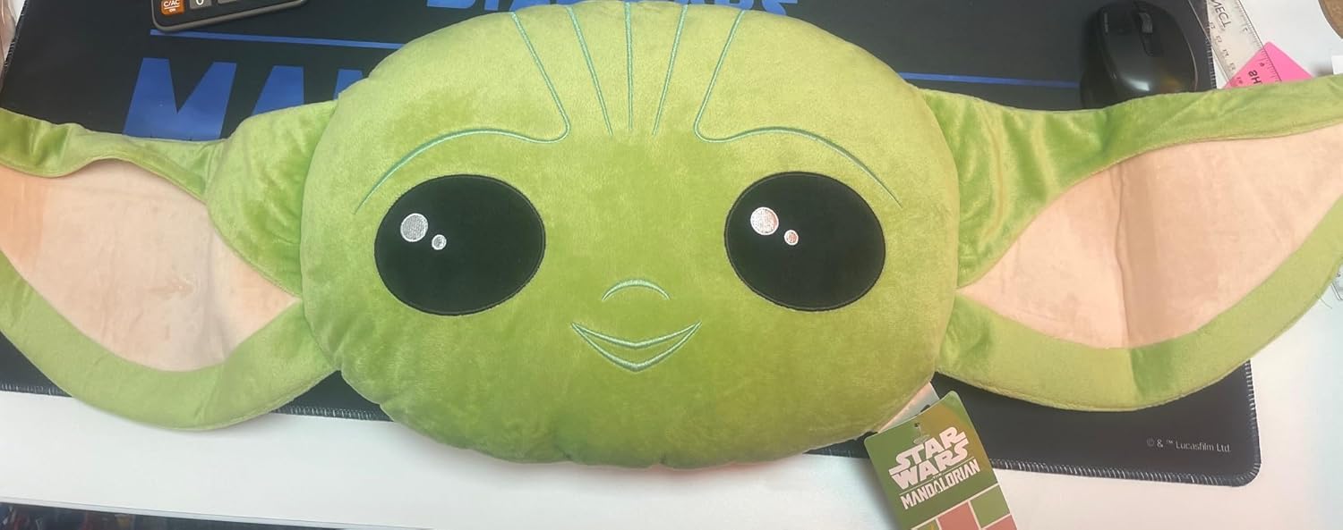 Disney Stitch 3D Plush Cushions for Bed Travel, Cute Cuddle Pillow Stuffed Character Pillow, Bedroom Accessories, Room Decor, Gifts for Kids (Green Baby Yoda, L14.96 x W10.23)