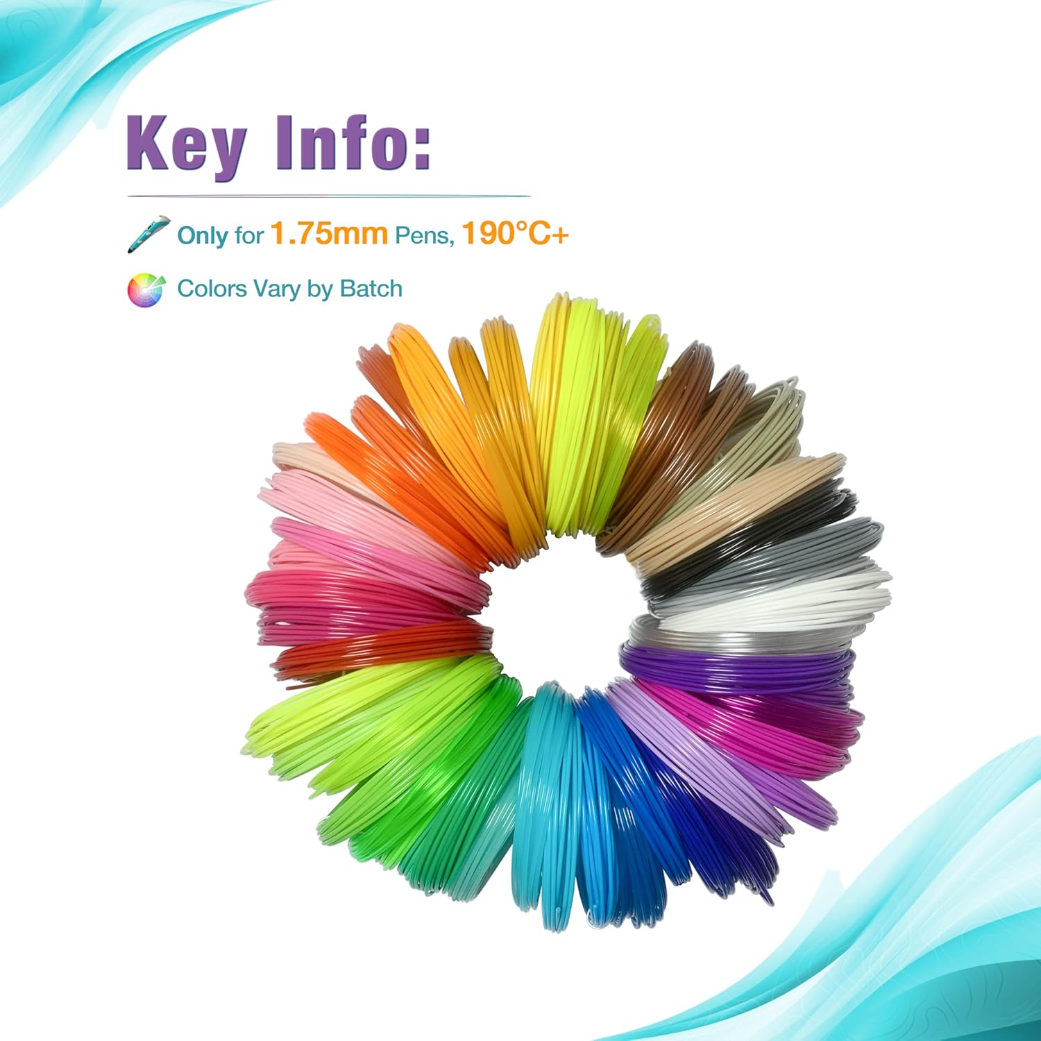 fuentai's 3D Doodler Start Refill Packs include 20 strands of 3D drawing pen refills in an assortment of 20 different colors. These colors are randomly selected from a pool of 40 vibrant options, so each pack may offer a unique combination (colors may vary between batches). Each strand is 5 meters long, providing you with ample material to unleash your creativity