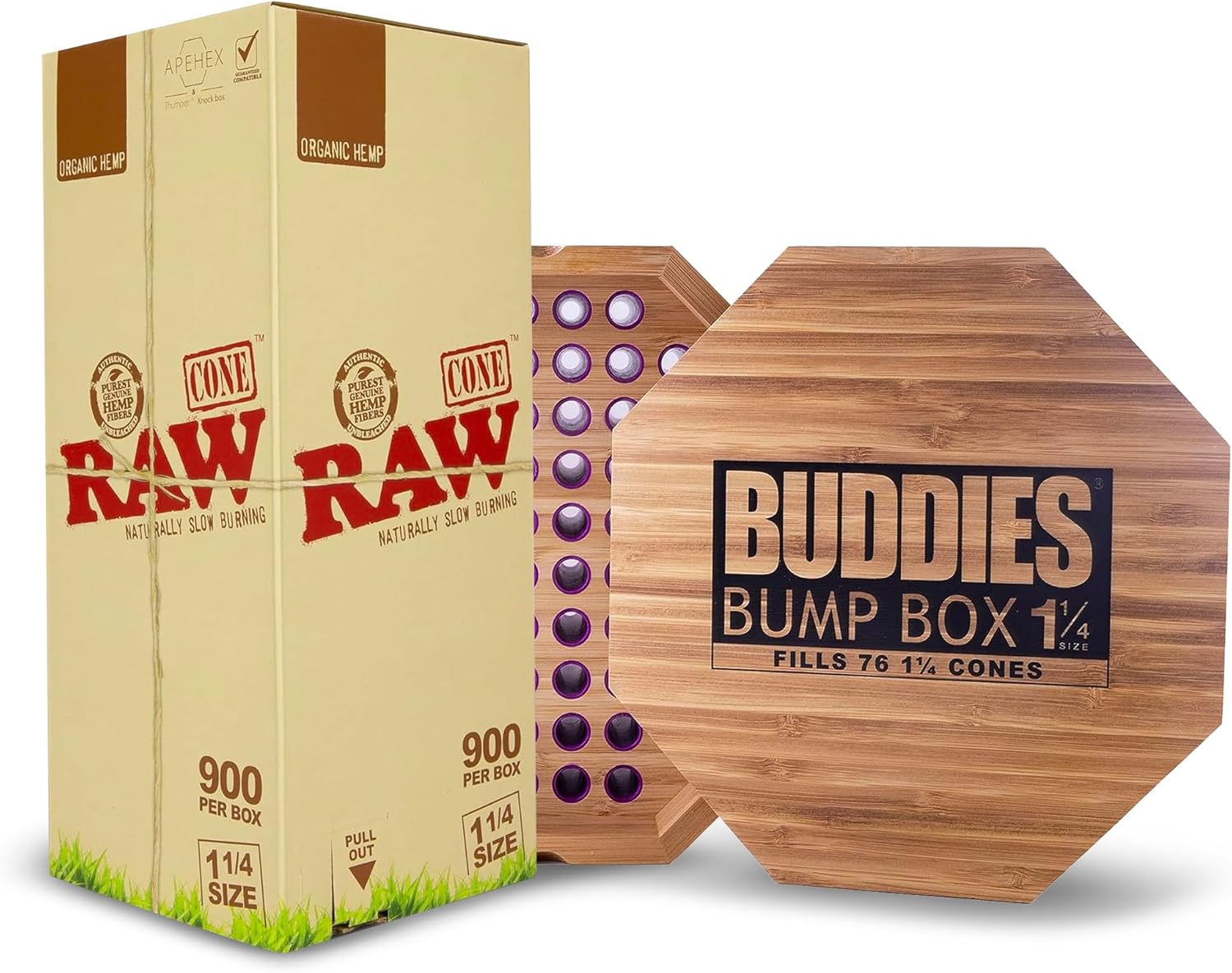 What You Get | Included with this purchase is an Authentic Buddies Bump Box with 76 slots. Also included as part of the with your purchase is an ESD scoop card to ensure that all your content is re-directed exactly where you intend + RAW Organic 1 1/4 Bulk 900 Cones