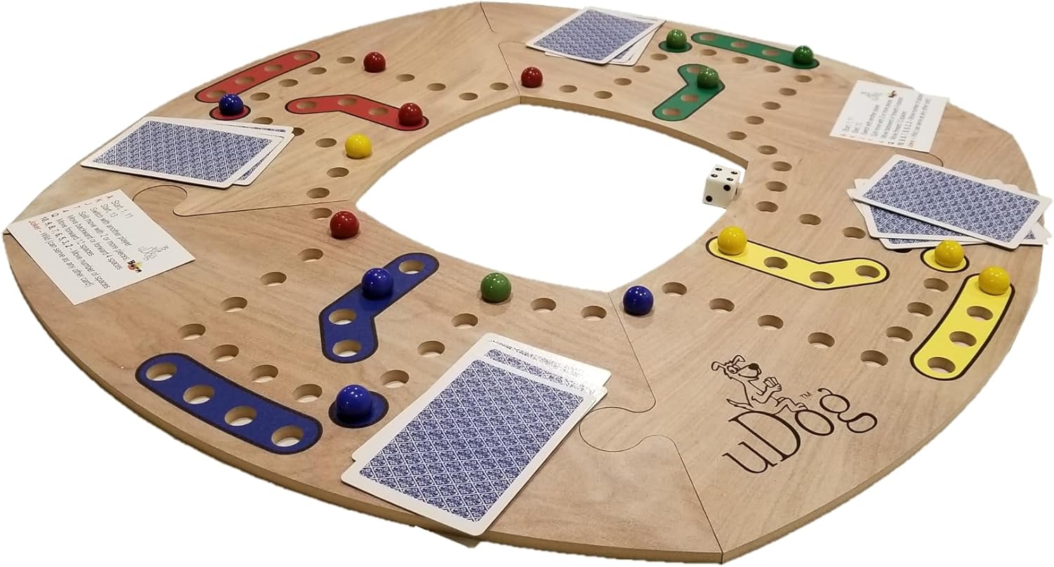 uDog Board Game | Old-Fashioned Fun for 2–12 Players | Made in The USA | Durable Wooden Pieces to Last a Lifetime | Family Game Night (4-Player)