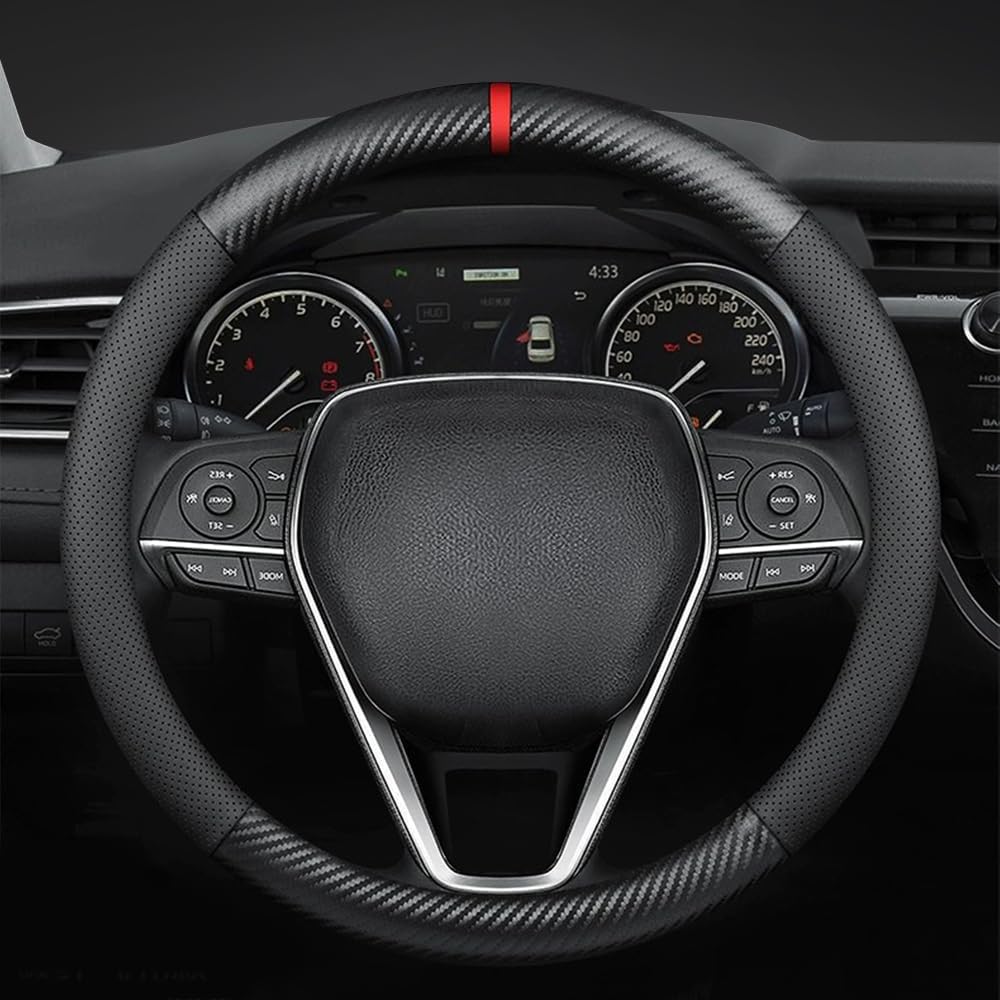 Carbon Fiber Leather car Steering Wheel Cover, Comfortable and Anti-Skid, Universal 15 inch (Black)