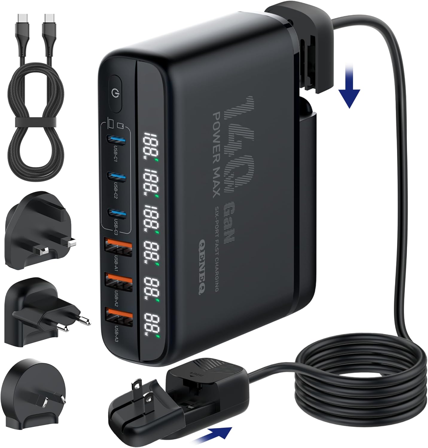 GaN 140W USB C Charger Block 6 Port Fast USB Charging Station Hub 100W Laptop Charger Universal Travel Plug Adapter Multi Port Charger Compatible with MacBook Pro/Air,iPad,iPhone,Samsung